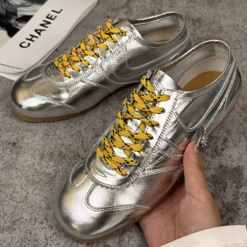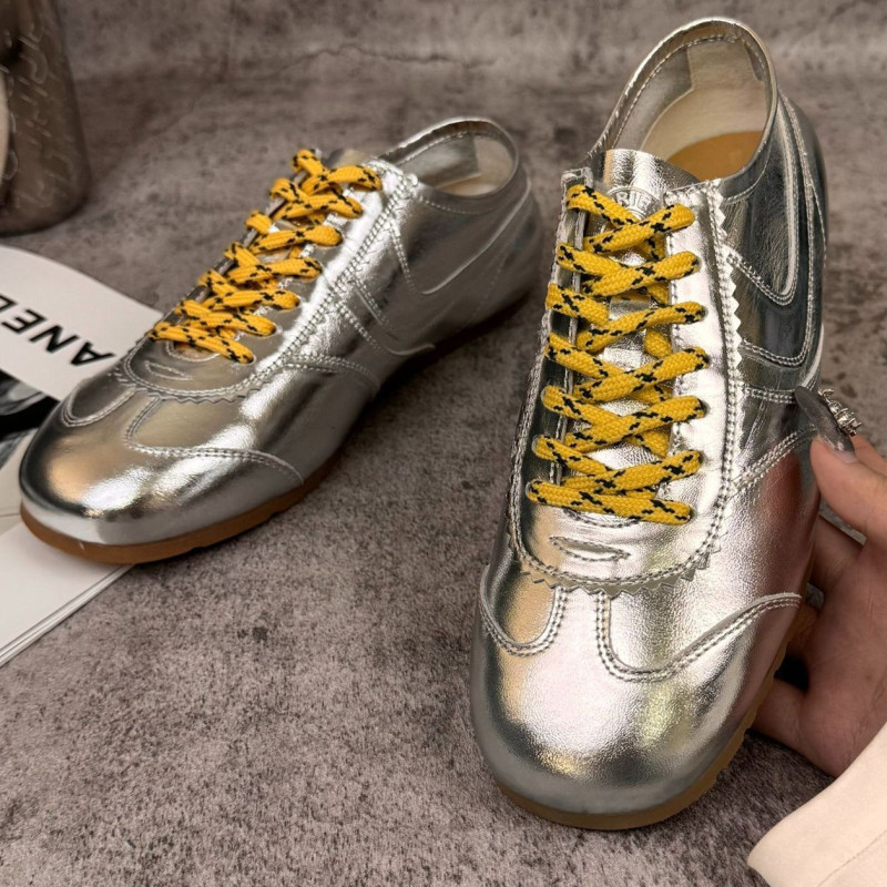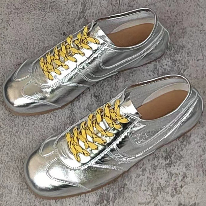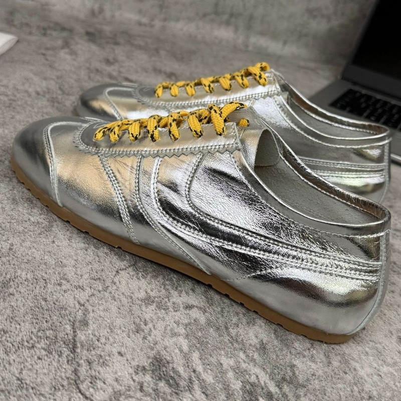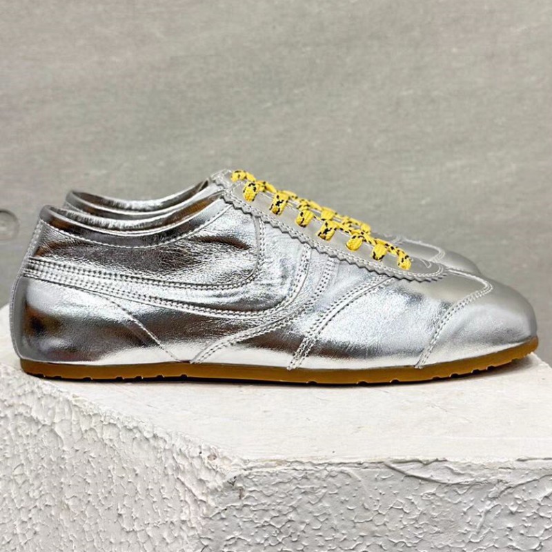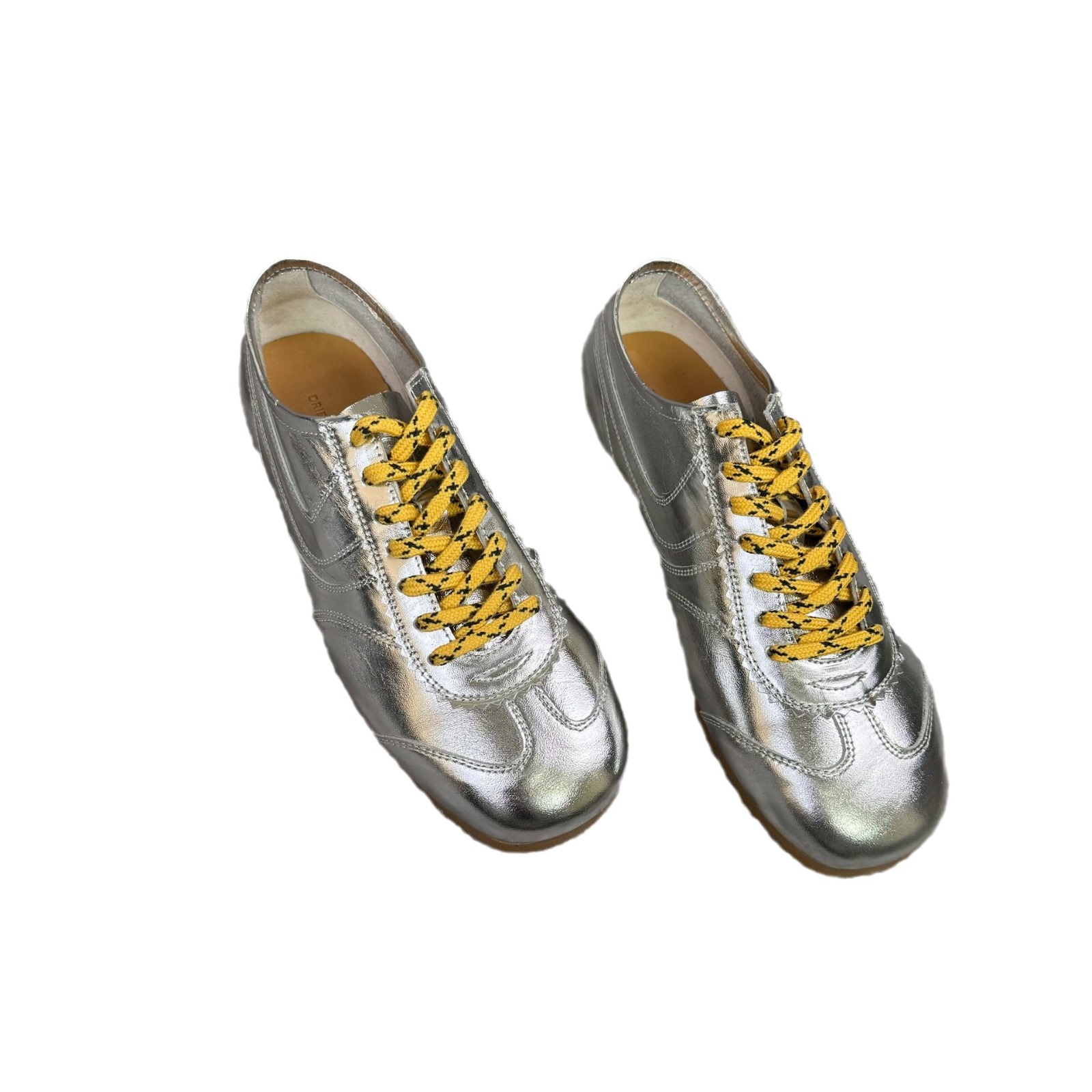 DRIES VAN NOTEN Genuine leather retro fashionable casual sports shoes in silver