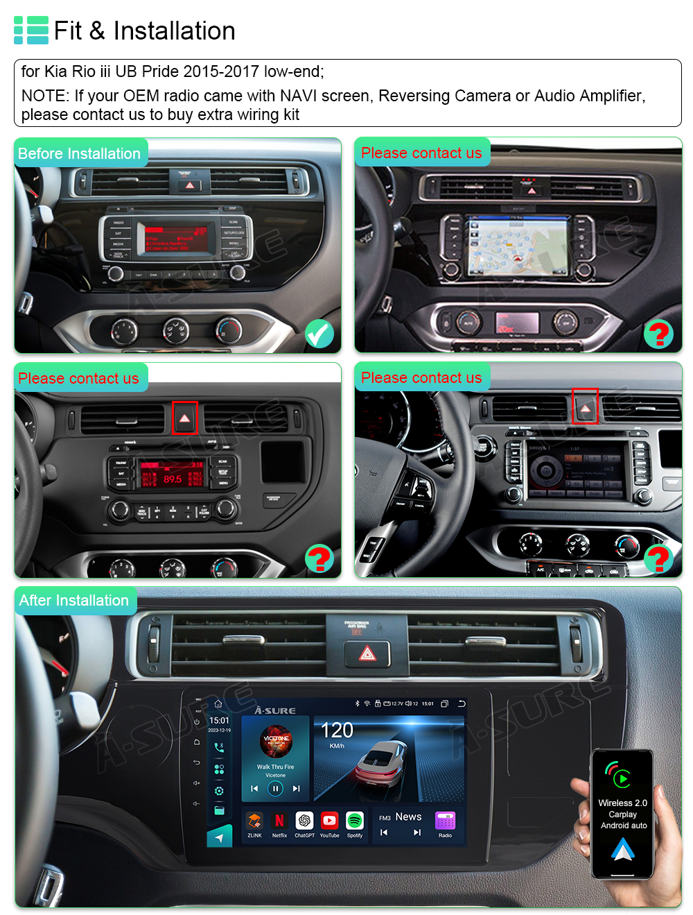 8 Core 6+128GB Android 15 Car Stereo Radio For Kia Rio 2015-2017 Apple CarPlay GPS Navigation Screen Head Unit WIFI + 4G LTE