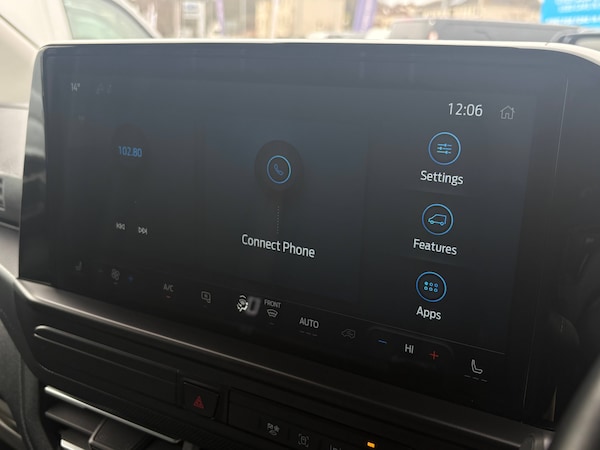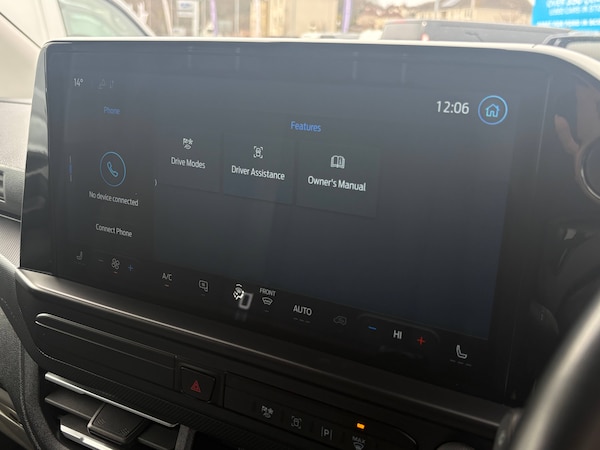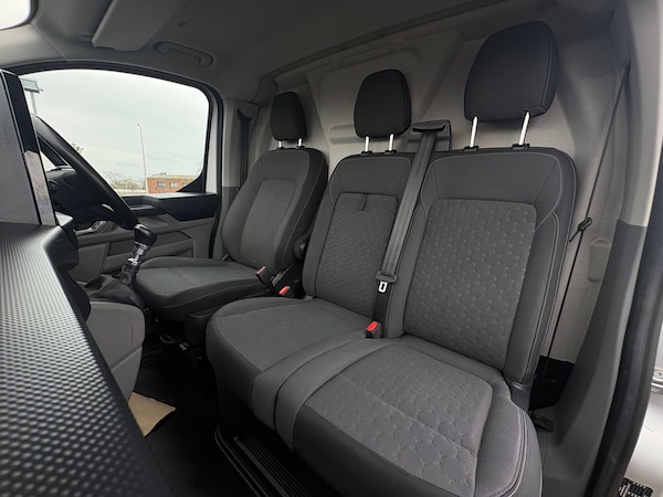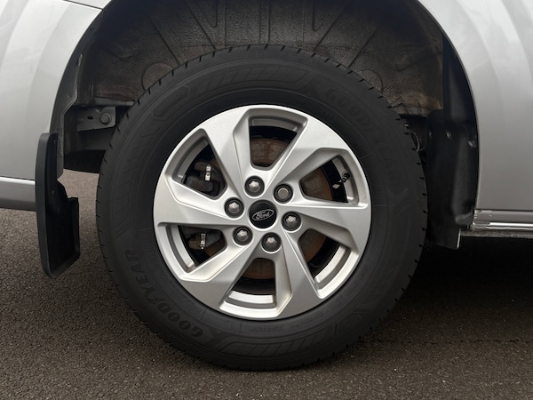 Passenger airbag, 13 inch Touchscreen, 5G embedded modem, AECS NO SMS/Roll Detect 2G, PAS, Tyre pressure monitor, Automatic headlights, Body coloured door mirrors, Body coloured front bumper, Body coloured rear bumpers, Daytime running lights, Dual heated auto fold power exterior mirror, Electric front windows with one touch facility for driver and front passenger, Fixed DSS LED headlamps with auto high headlamp, Front splash guards, Kerbside side load doors, Low roof line, Molded load floor liner, Quickclear front window defroster, Rear cargo hinged door, Rear splash guards, Solid paint, Tinted glass, Trailer sway control, 8 Load compartment tie down loops, Automatic air conditioning, Courtesy light, Full height polypro interior trim panels, Full metal bulkhead, Interior grab handle with driver's sunglasses holder, LED lights, Locking glove box lid, Sensico gearshift knob, Sensico steering wheel, Super bright load compartment lights, Comfort dual passenger seat pack - Transit custom Limited, Driver assistance pack 2 - Transit custom, 2 remote keys, Alcohol Interlock wiring preparation pack, Keyless entry and start, Locking wheel lug nut, Power door dead locks, Standard unlocking, Thatcham category 1 alarm, 20L AdBlue tank, 55 litre fuel tank, ABS, Diesel particulate filter, ESP, Hill launch assist, Traction control, SYNC 4 - Android Auto/Apple Car Play,advance speech recognition,over the air update capability, 16 inch alloy wheels in sparkle silver, 16 inch Steel spare wheel, Full wheelcovers