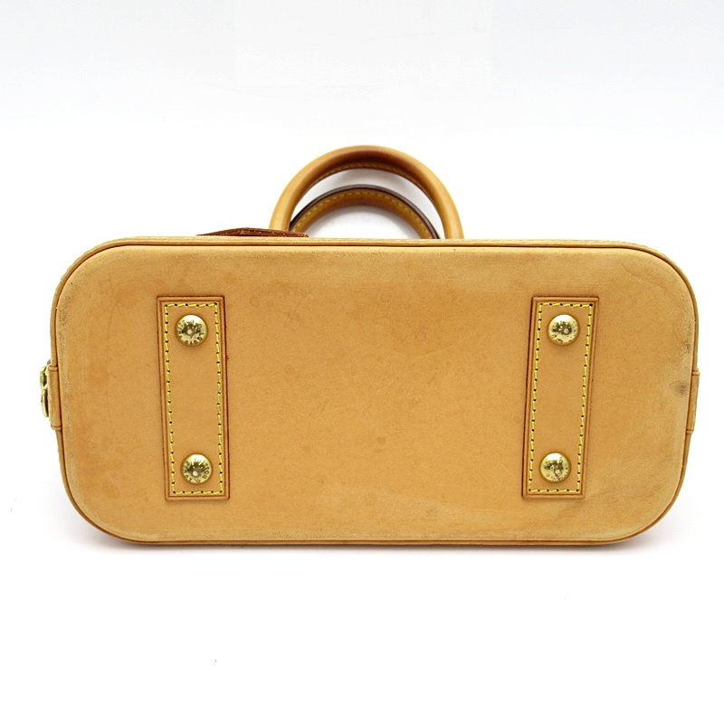 | Shows some signs of use. The vachetta leather has discoloration, darkening, scuffs, and stains. There is wear on the corners. There are small scratches on the bottom studs. There is some staining inside. |