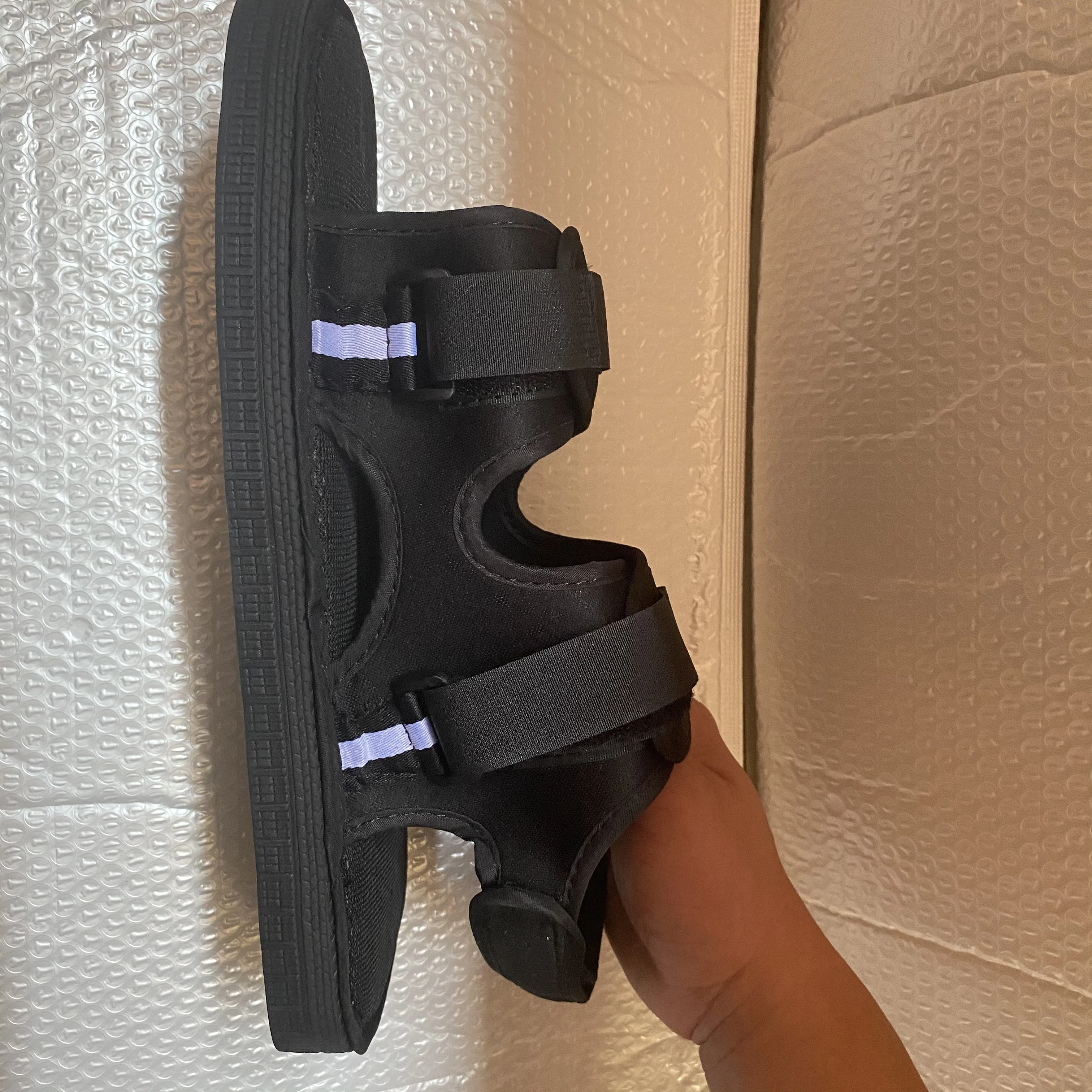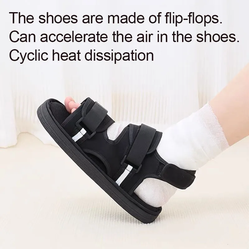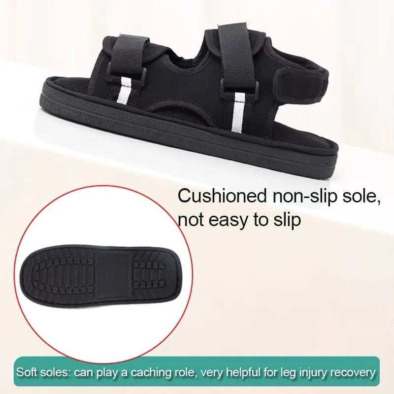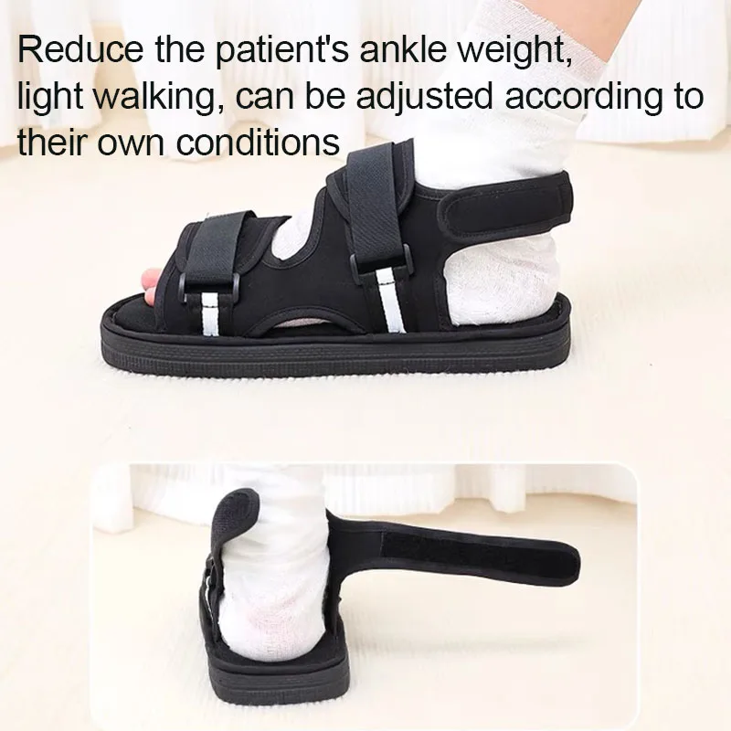 --The adjustable fastener strap easily adapts to bandages and swelling of the foot.