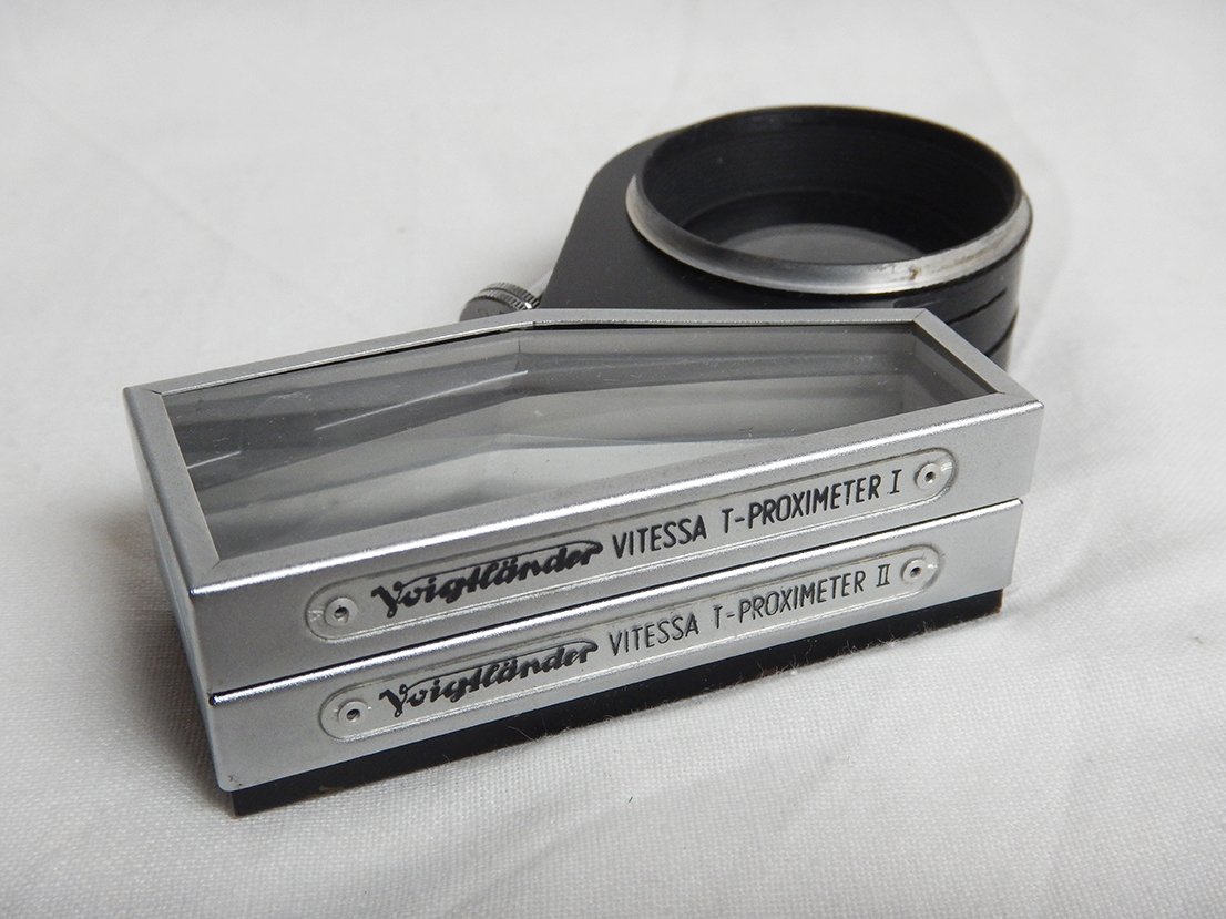 Voigtlander Vitessa T + 50mm f2.8 Color-Skopar + 35mm f3.4 Color-Skopar + 100mm f4.8 Dynaret + Filters + LensHood + Turnit 3 ViewFinder + Vitessa T-Proximeter I&II & Accessories + Original Suitcase for the whole Set in Eccellenti Condizioni / Excellent Condition