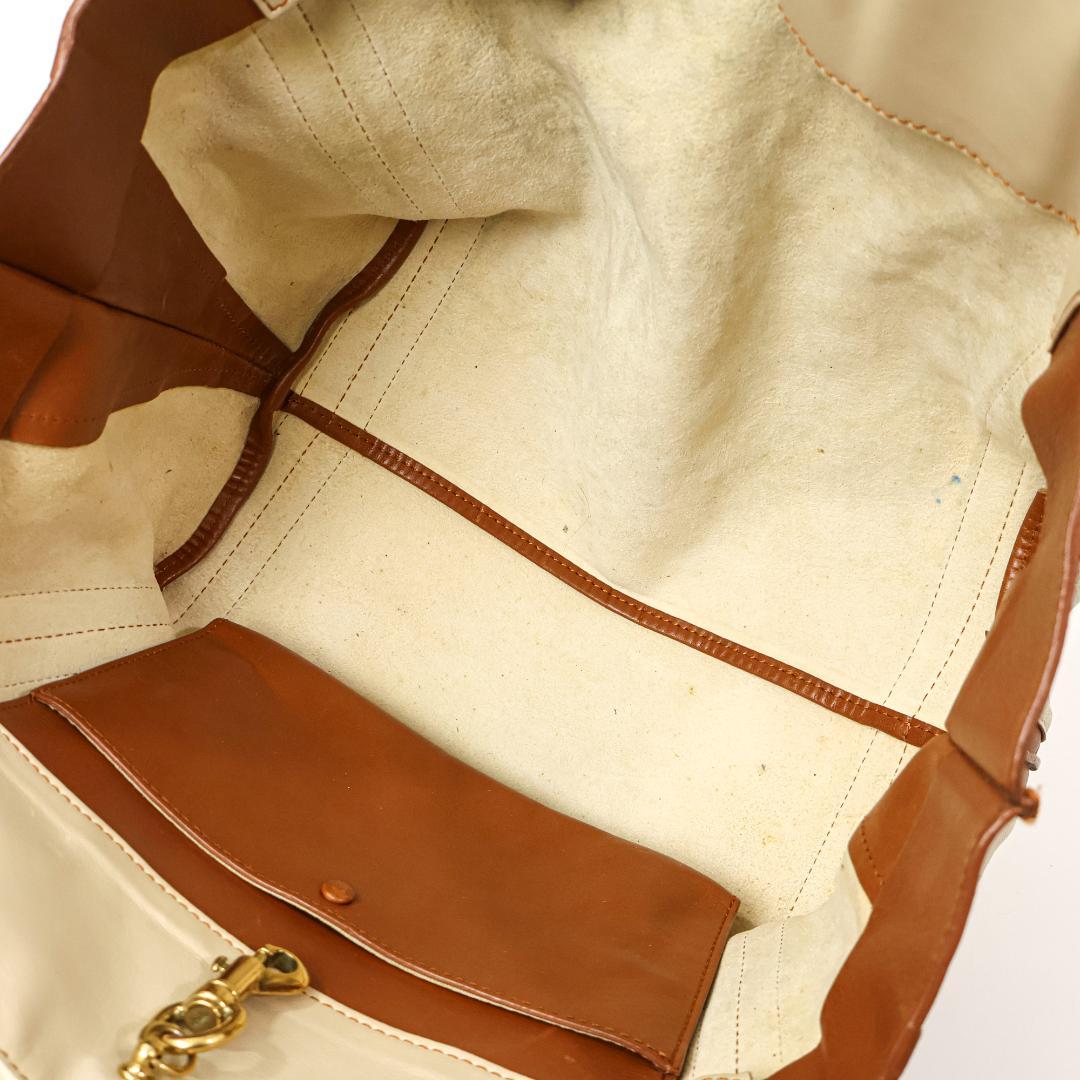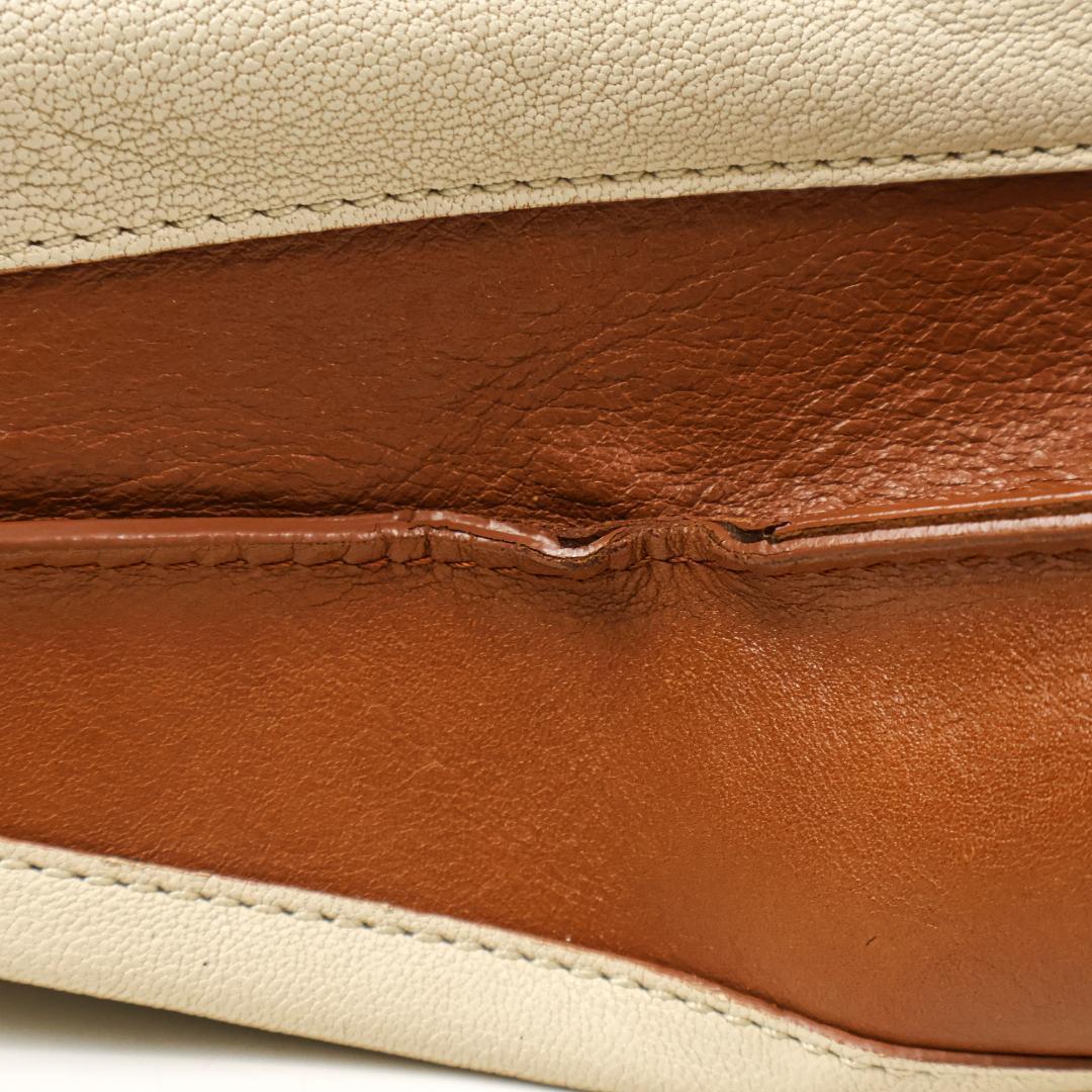 | Closure | Metal clasp main closure; interior zipper pocket |