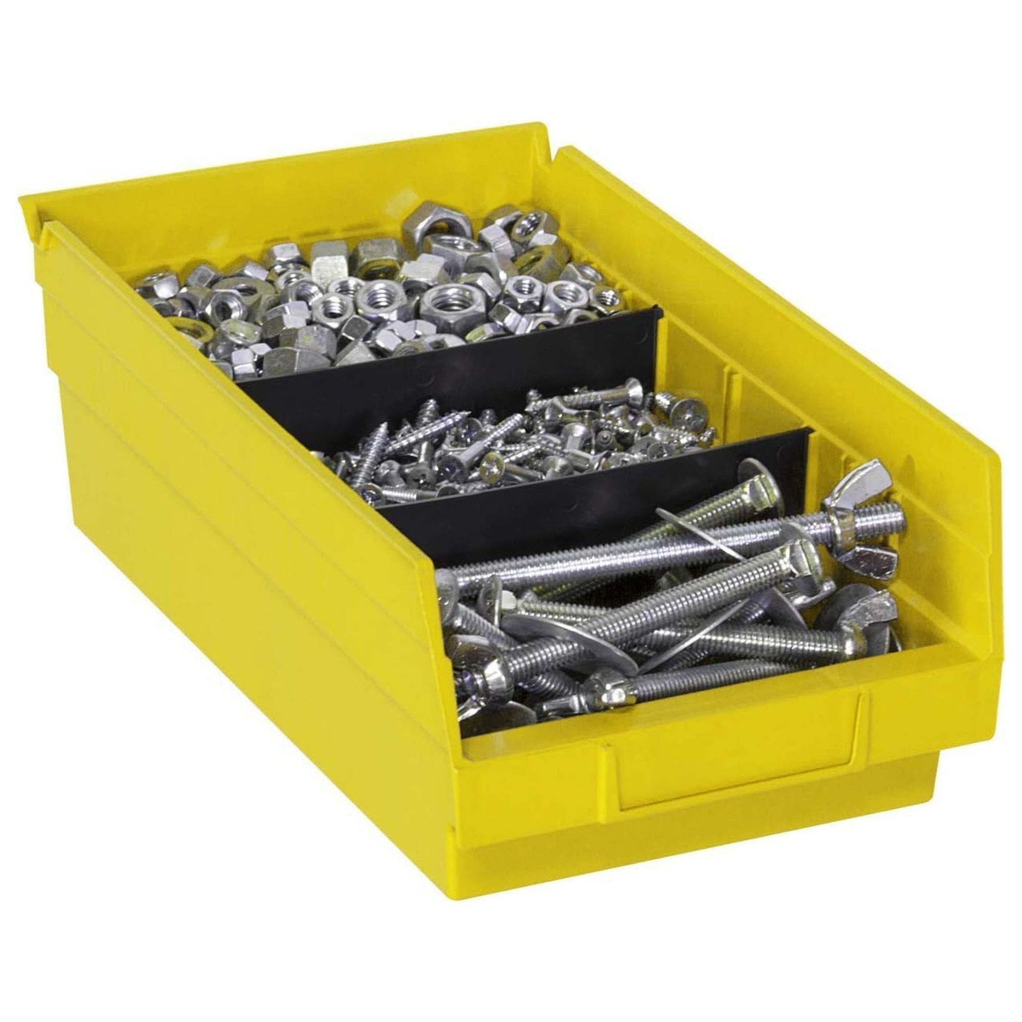 The smart, space-saving design allows the bins to stack securely, maximizing vertical storage while freeing up valuable floor space. An extra-wide stacking ledge enhances stability and helps prevent spills, while the built-in anti-slide stop keeps stacked bins from shifting forward. For a customizable organization, optional dividers and label holders, sold separately, allow you to tailor each bin to your needs and create an efficient storage system. These bins can also be paired with compatible shelving or cabinets, sold separately, for an even more streamlined setup.