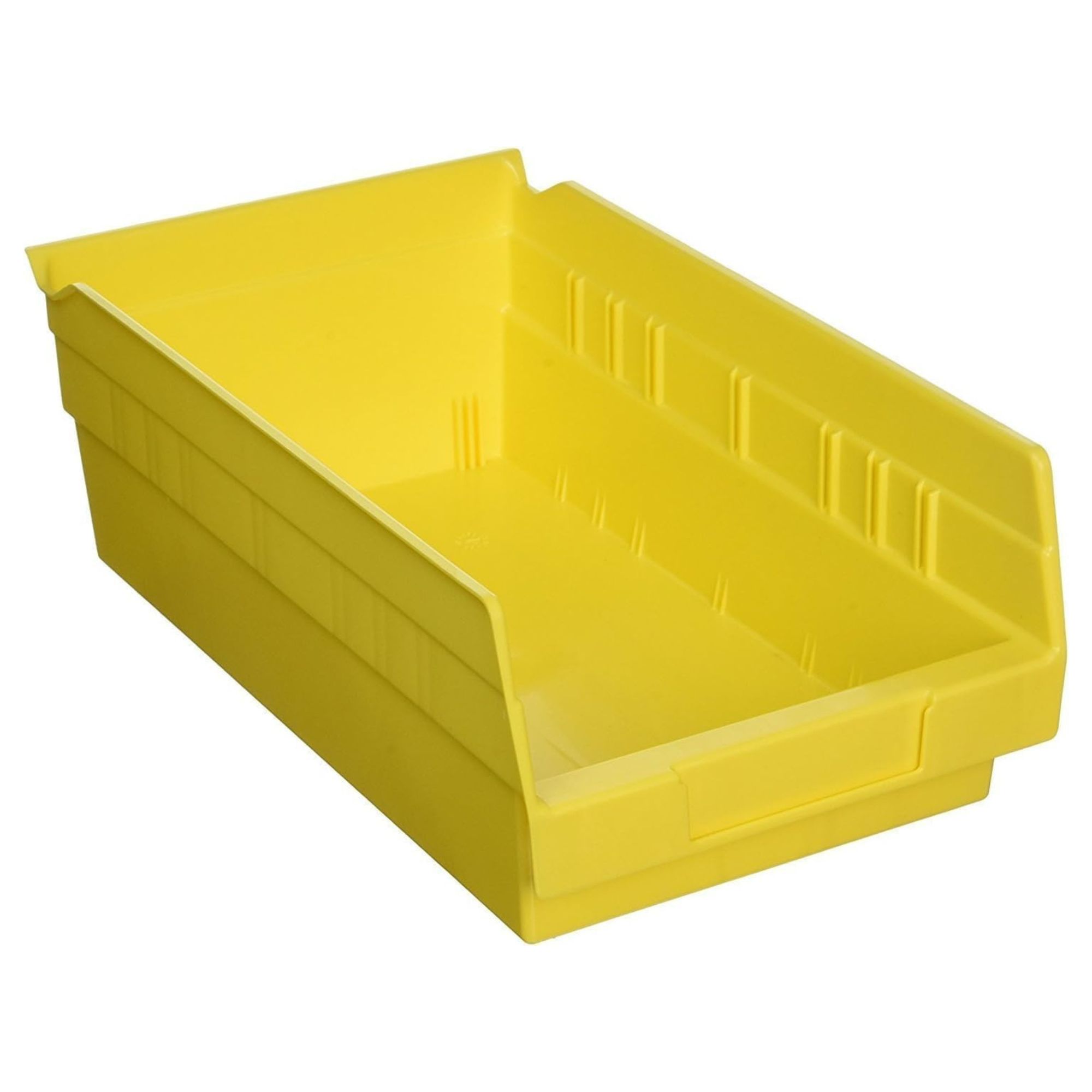 For storing sports equipment, garden tools, paint cans, hoses, pet food, and other large supplies, these bins provide easy visibility and convenient access through a wide front opening that lets you quickly grab what you need without unstacking. Constructed from heavy-duty, one-piece industrial plastic, these storage bins are resistant to rust, water and corrosion for long-lasting performance indoors or outdoors. Reinforced side ribs add extra durability and help prevent spreading under heavy loads, ensuring reliable support even in demanding environments.