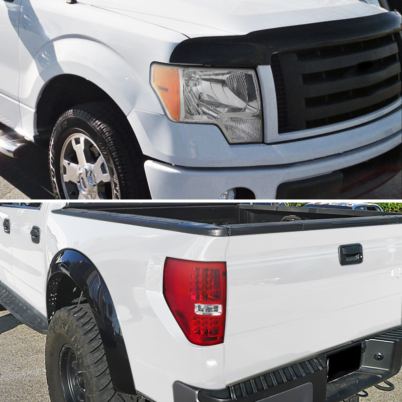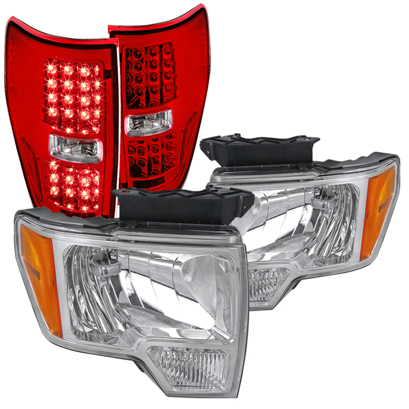 For Ford F150 F-150 Pickup Headlights+Red LED Rear Brake Lights Tail Lamps Pair