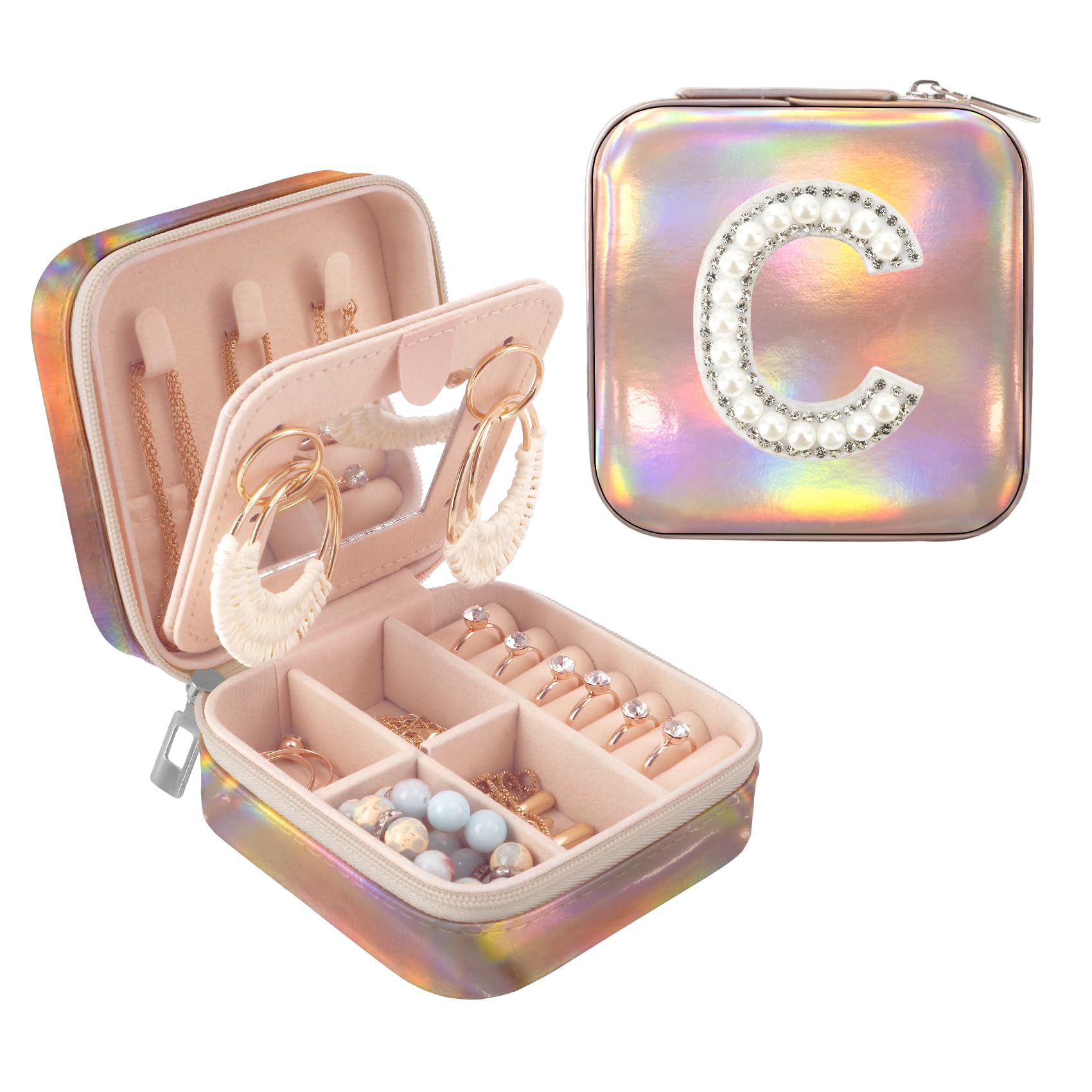 - Small Jewelry Travel Case: This initial letter jewelry box comes with a mini mirror, 6 slot rolls, 4divided compartments, 6 earring holes, and 3 necklace hooks. The 4 compartments can be adjusted according to your needs, including lipstick and lipstick.