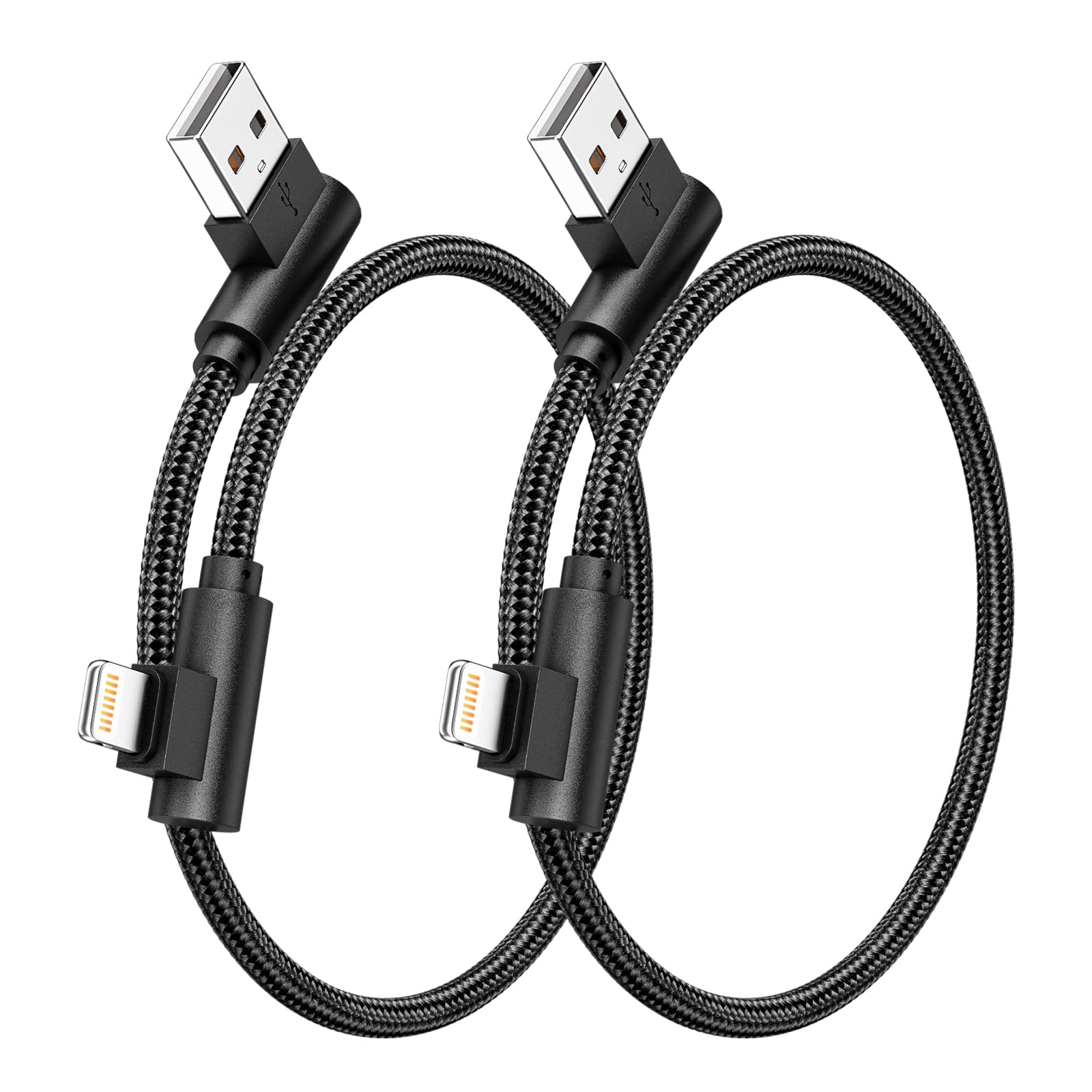 Osecet iPhone Charger 1ft 90 Degree 2 Pack MFi Certified Elbow Short Black