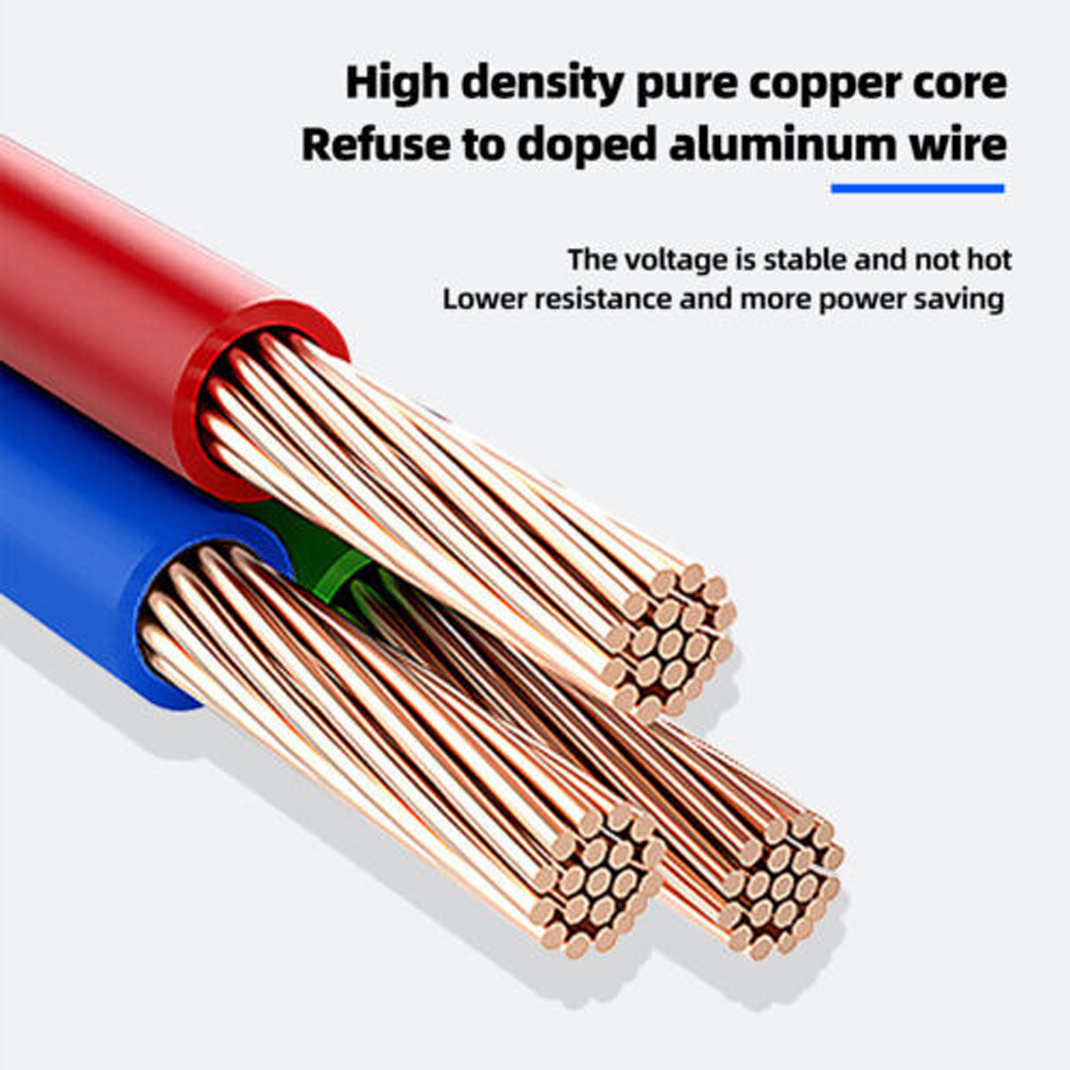 -Pure high density copper core, the voltage is stable and not hot, and the resistance is lower and more energy-saving.
