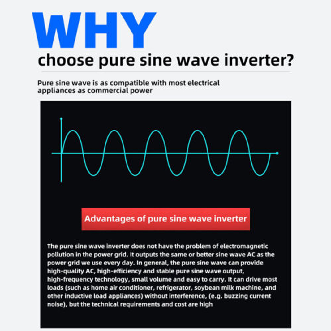 -The pure sine wave inverter does not have the problem of electromagnetic pollution in the power grid, and can supply high-quality alternating current.