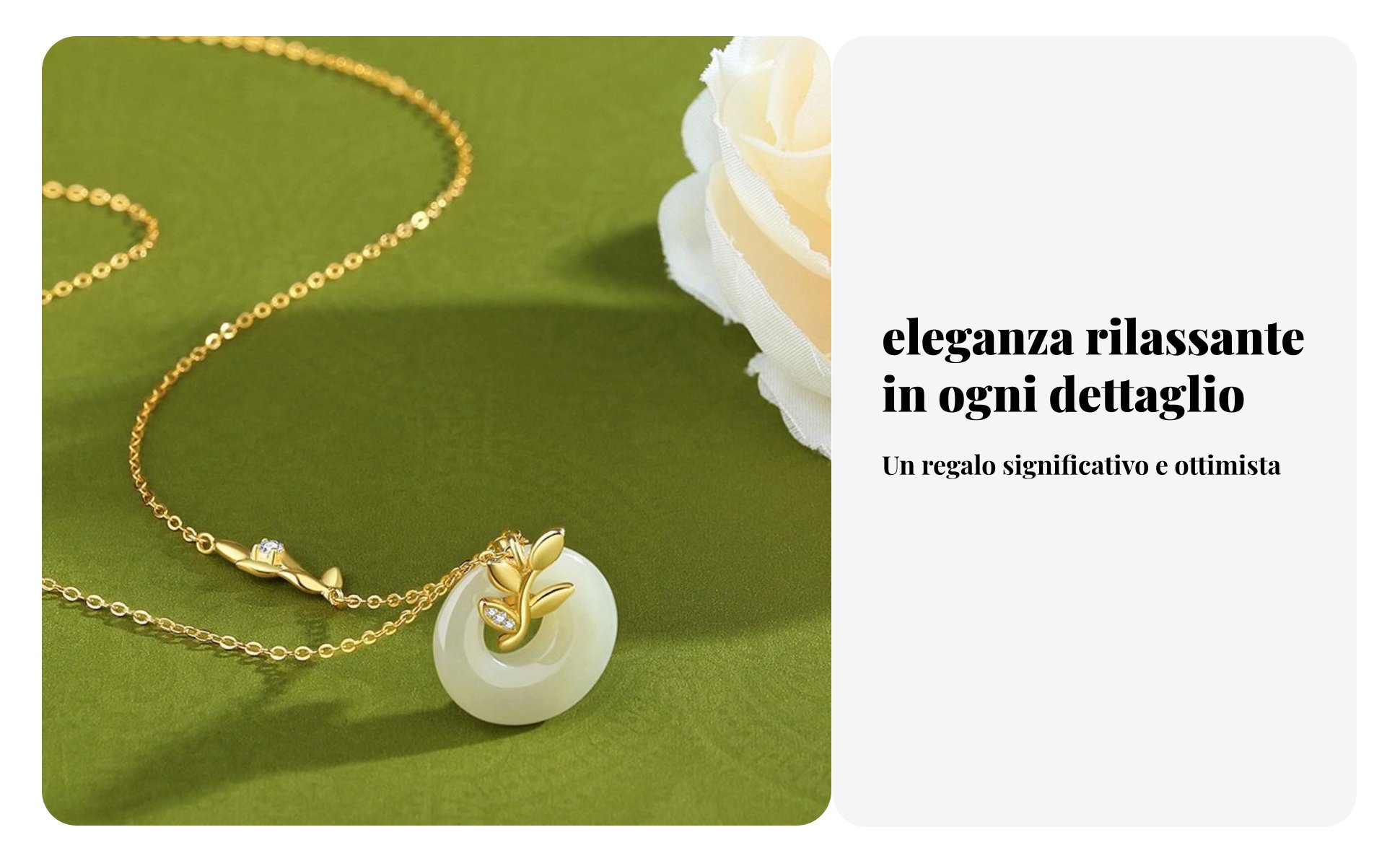 【Design Simbolico】: Questa collana presenta una ciondolo a forma di "fibbia della pace" in finta giada, sormontato da una delicato motivo a spiga di grano, che simboleggia pace, abbondanza e prosperità. una gioiello da donna ricco di significato.