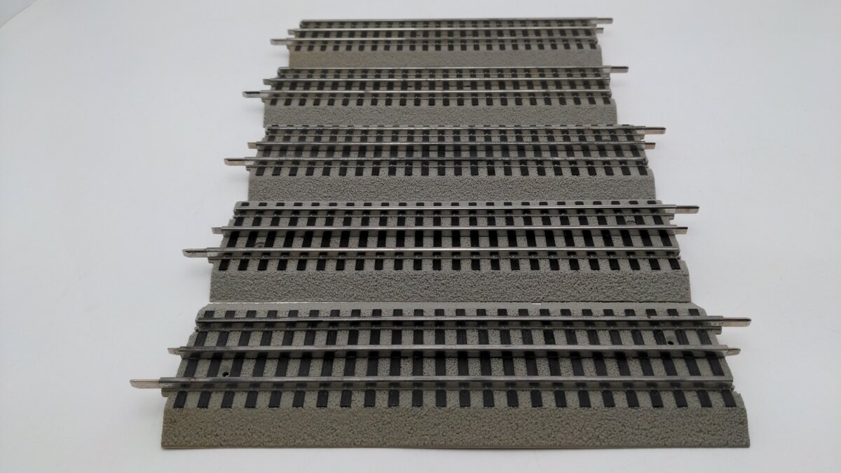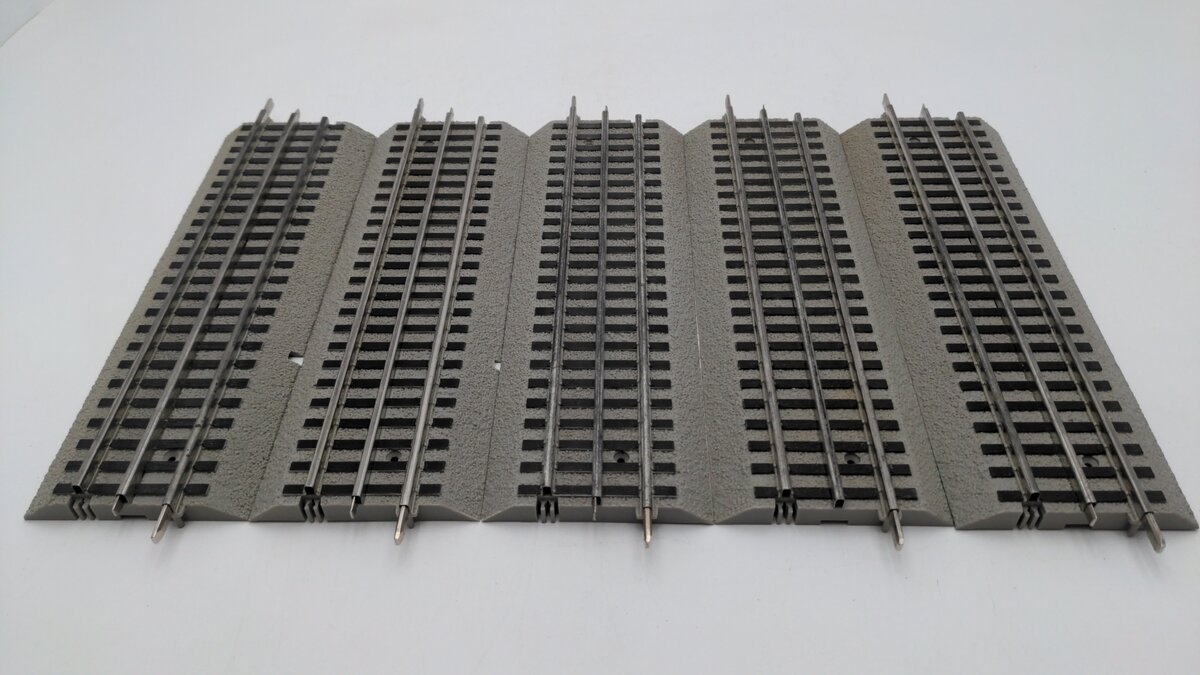 Here are 5 Lionel 6-12014 FasTrack 10" Straight Track (5). Each section is constructed of plastic with metal rails on a sturdy plastic bed.