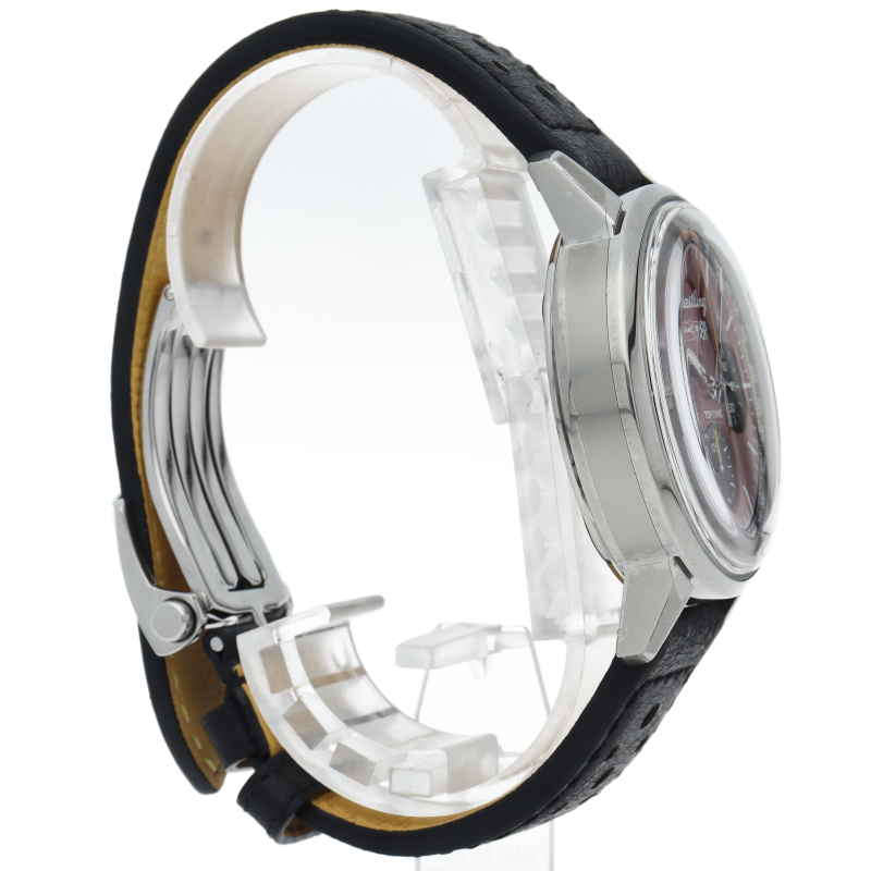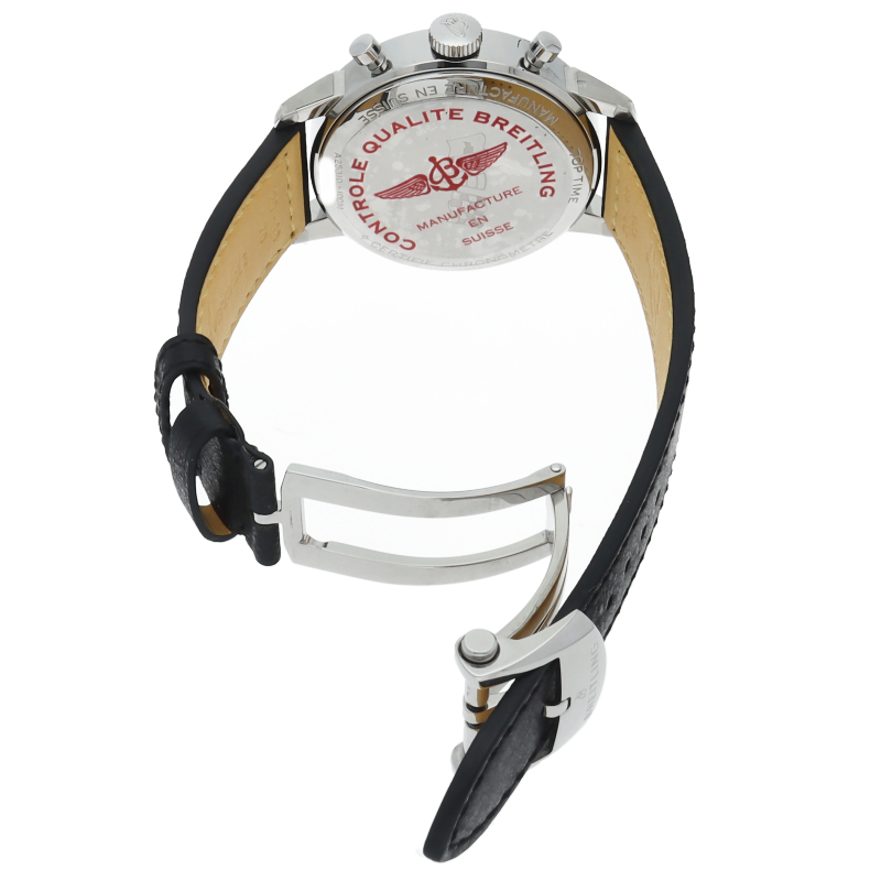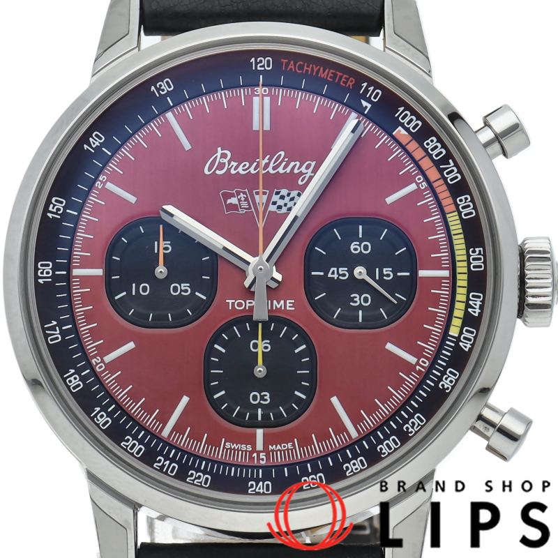 | Breitling continues to create top-time designs by partnering with some of the most popular figures in the world of motorsport. The Top Time B01 Chevrolet Corvette features classic car colors and emblems, a perforated leather racing strap, a tachymeter scale for speed measurement, and contrasting rounded subdials reminiscent of vintage dashboard gauges. A25310/A25310241K1X1 |