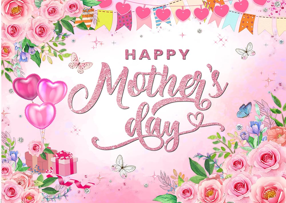 CYLYH 7x5ft Happy Mother's Day Backdrop Thanks Mother Pink