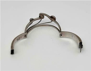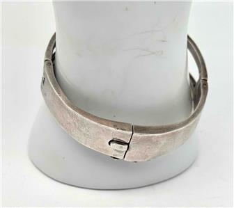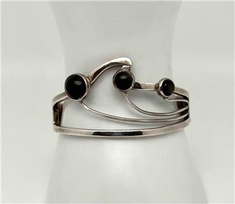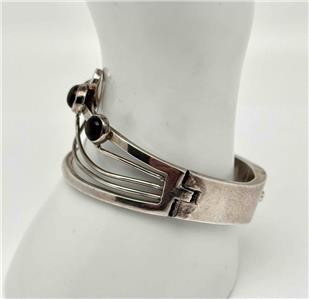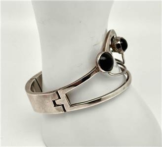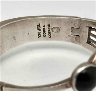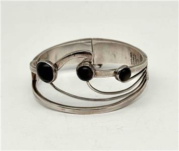Vintage Mexico Taxco JGL 925 Sterling Silver Obsidian Hinged Bangle Bracelet