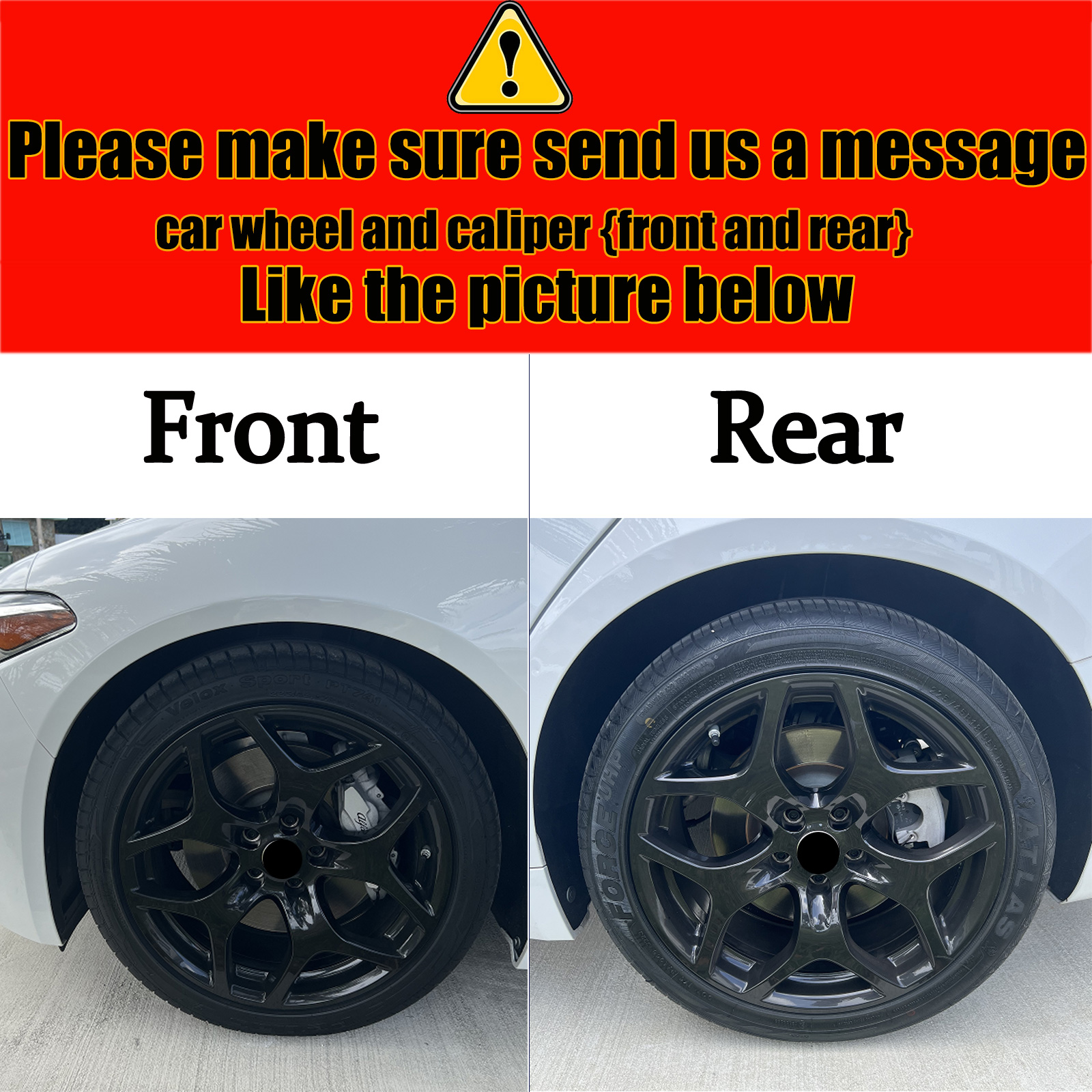 【Before Purchase 】Please contact us, we need your car model , and picture of car caliper and car wheel to start customizing your caliper cover (If you don't know how to take photos. Please look at the image in the link)