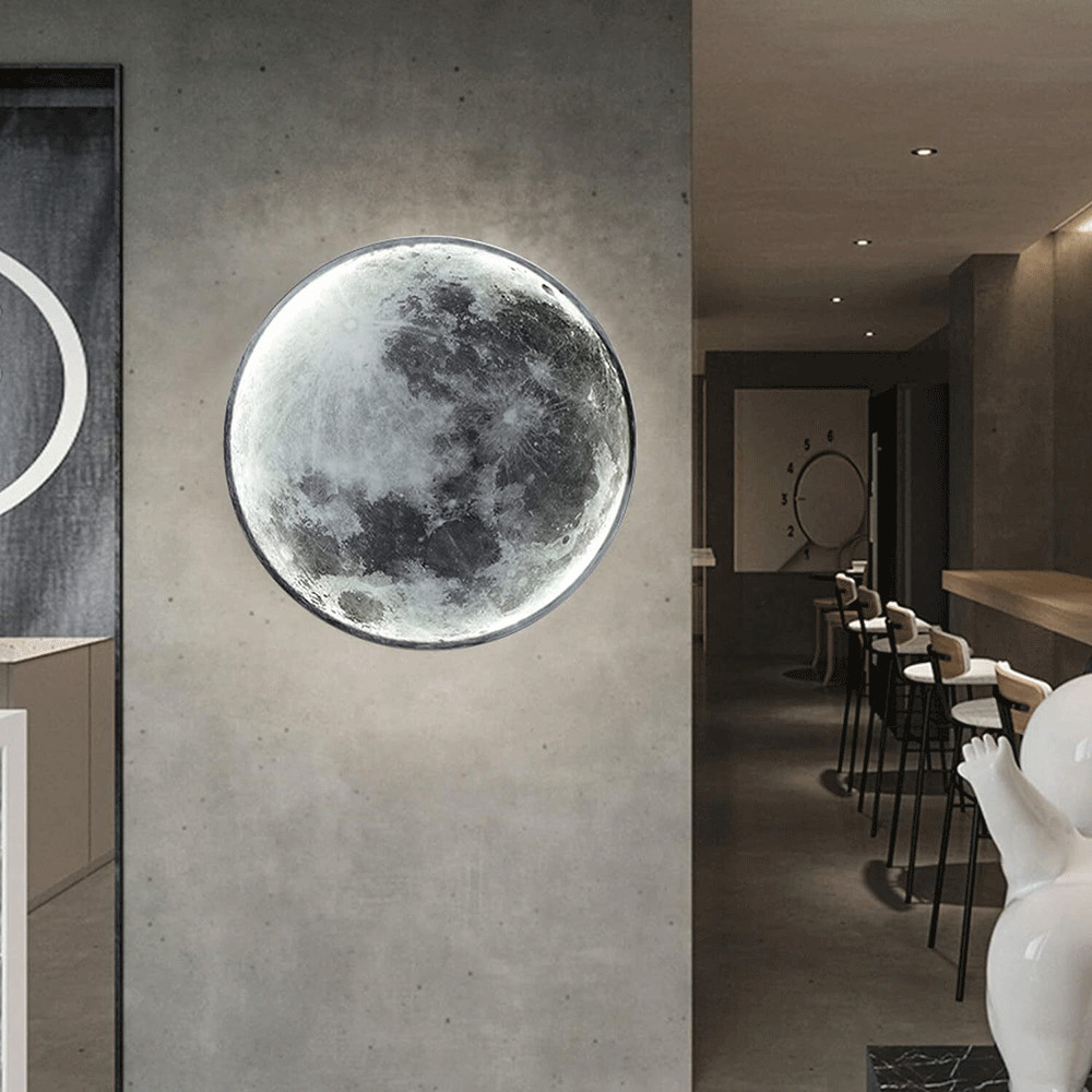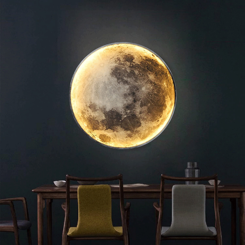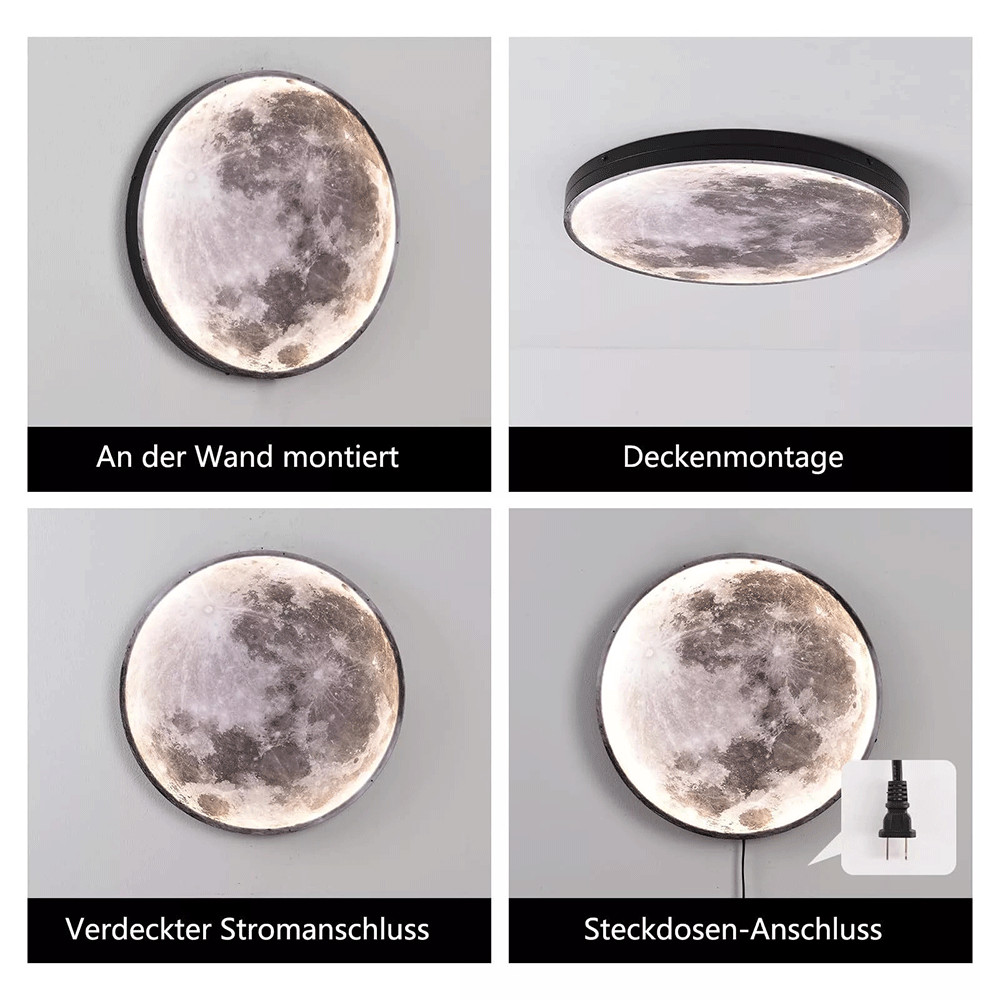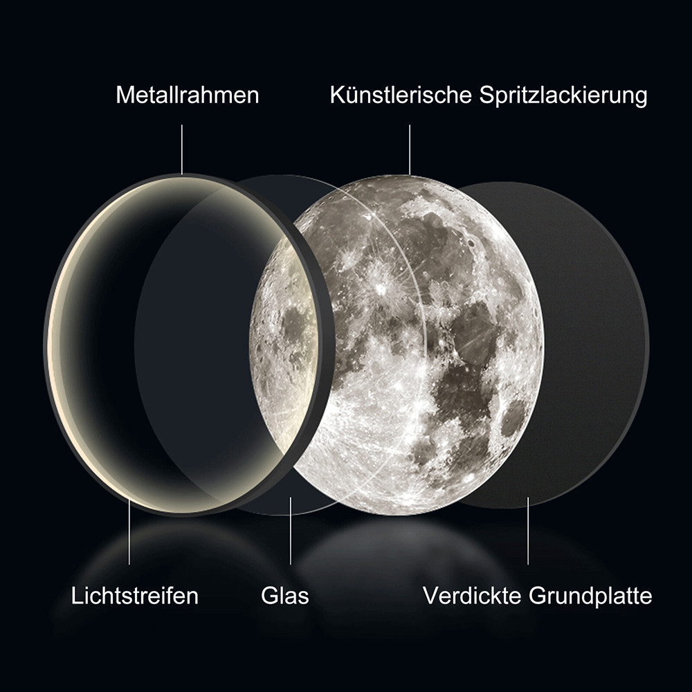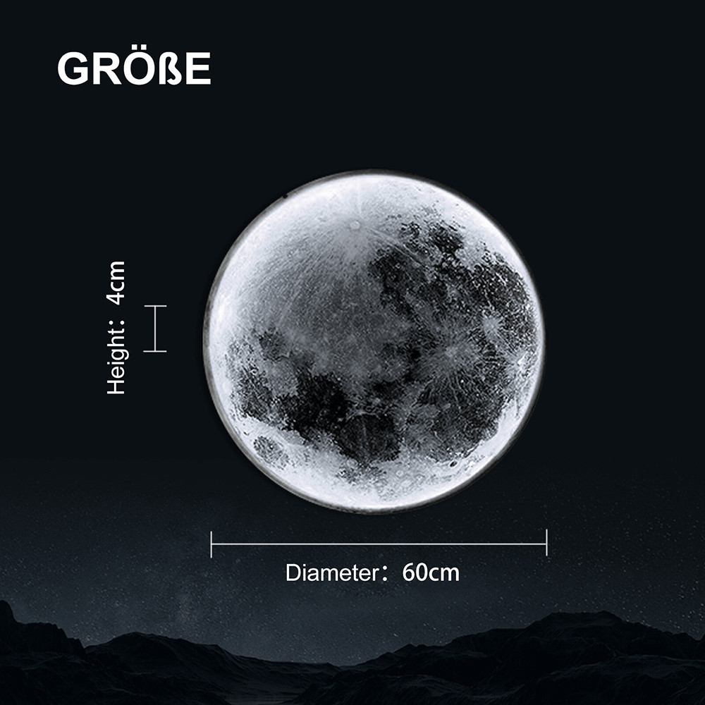 Einzigartiges Design: Die LED Modern Mond Wandleuchte ist mit einem realistischen Mondmuster gestaltet, so dass Sie den Mond nicht nur im Freien, sondern auch in Innenräumen sehen können, um den exquisiten Vollmond zu genießen.