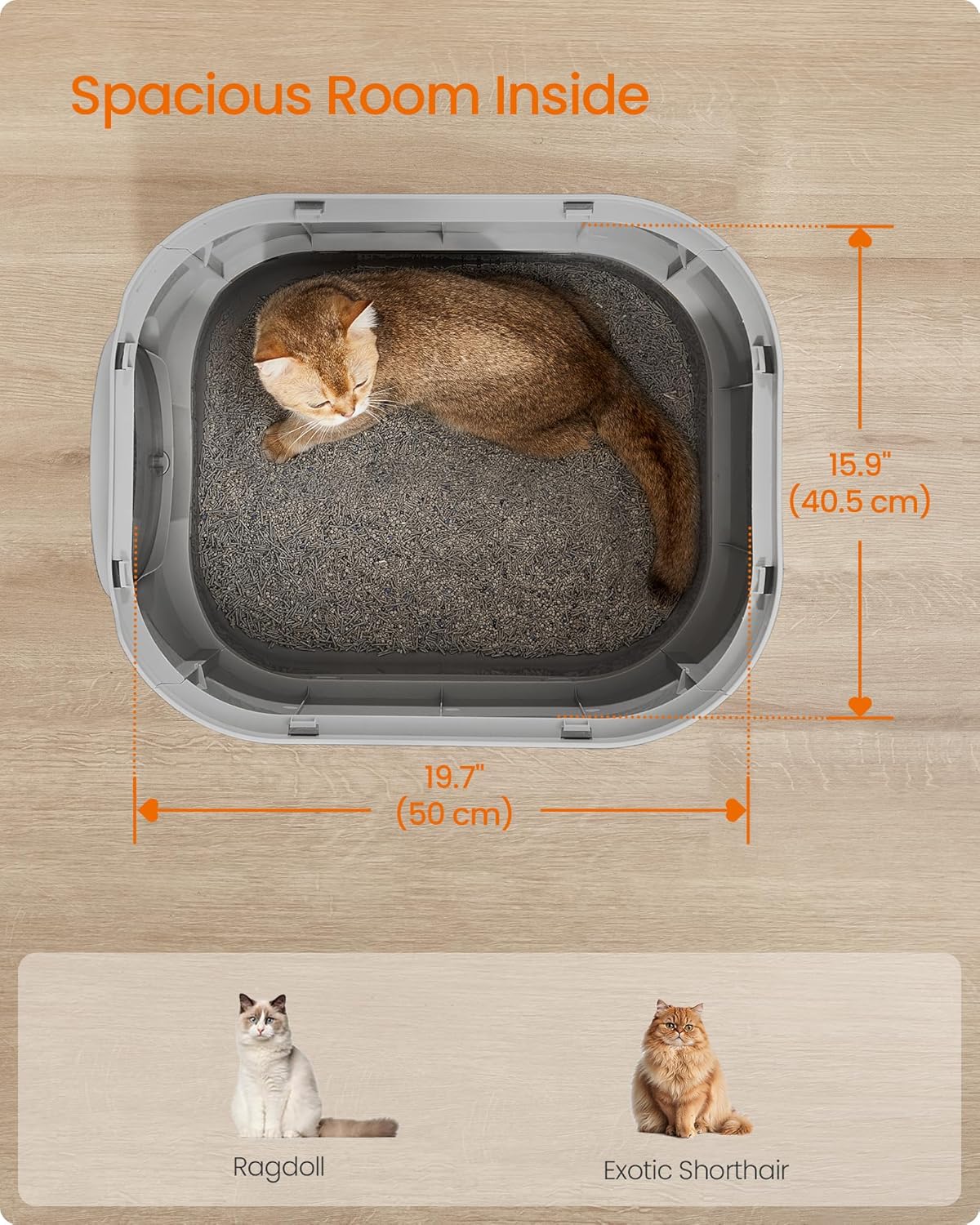 【SPACIOUS ROOM INSIDE】The inner size of the large cat litter box is 19.7" x 15.9" x 13.6", offering roomy space for your cats