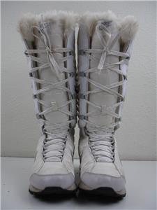 SIZE: Womens 7.5 M (medium width). 14" tall including the 1" heels. 15" around the top opening.