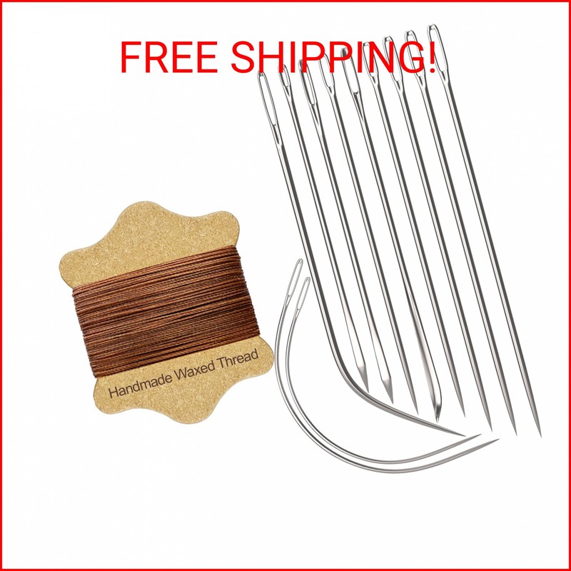 VONEEDL Upholstery Repair Kit: Waxed Sewing Thread (Brown Color) & Heavy Duty Needles (11 PCS) for Leather, Canvas & Quilting Thread
