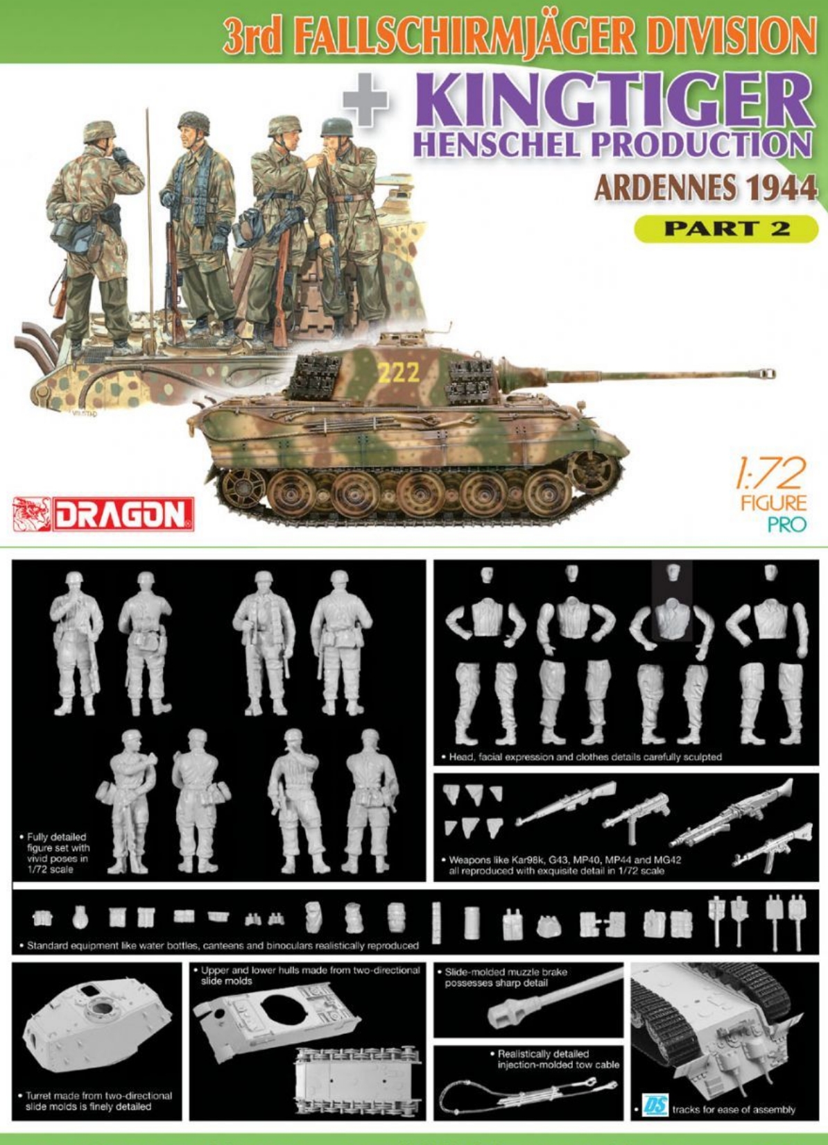 DRAGON 7362 1/72 3rd Fallschirmjager Division + Kingtiger Henschel