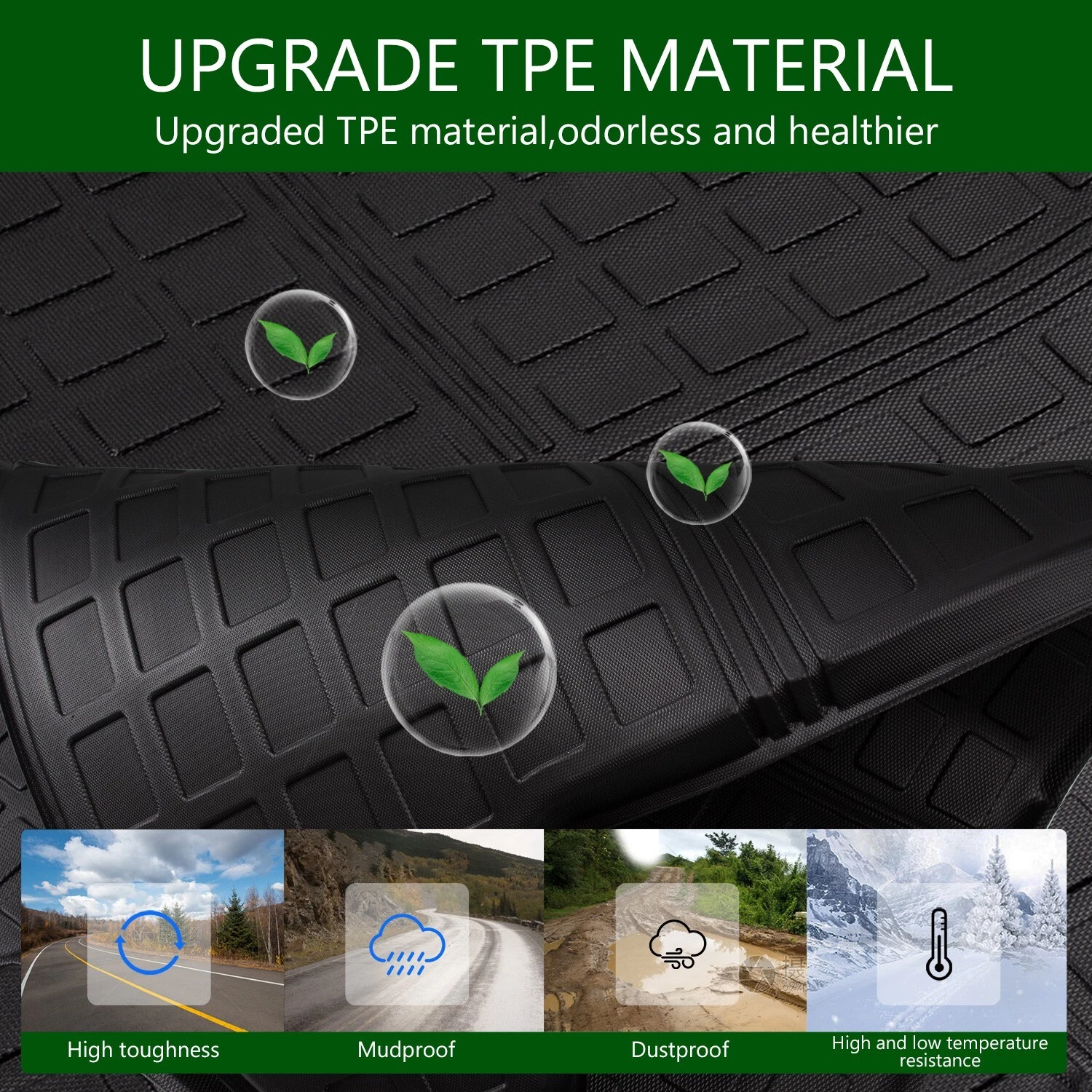 【Eco-Friendly TPE Material】Made from high-quality TPE, our floor mats are non-toxic, odorless, and eco-friendly. The material offers high elasticity and wear resistance, ensuring heavy-duty performance without deformation or cracking.