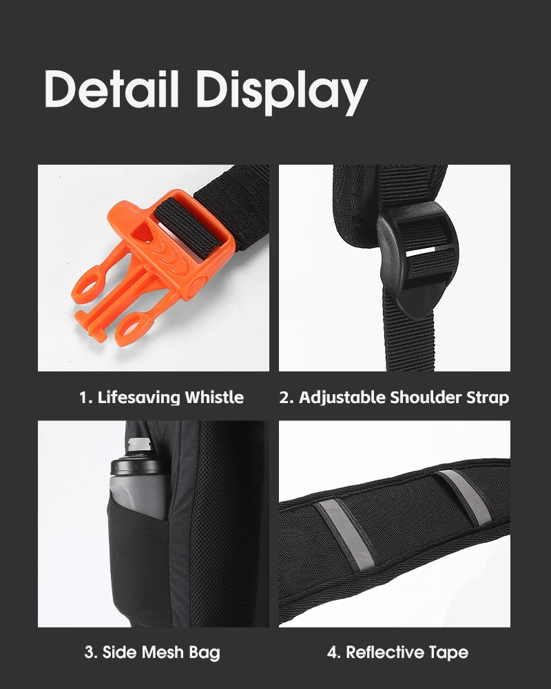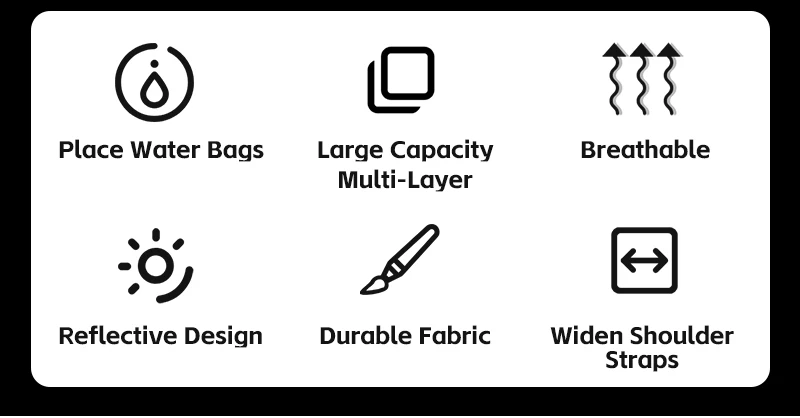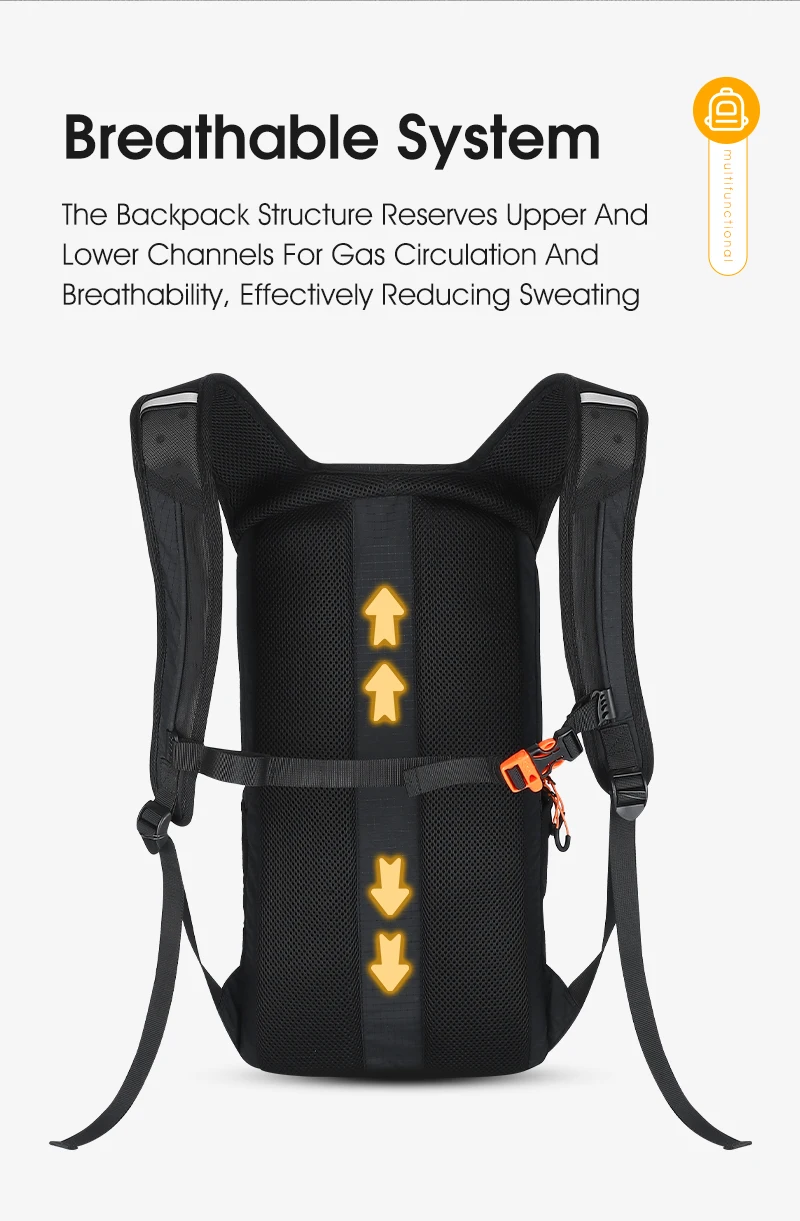 3.Breathable padded back panel,adjustable sternum strap and shoulder strap.