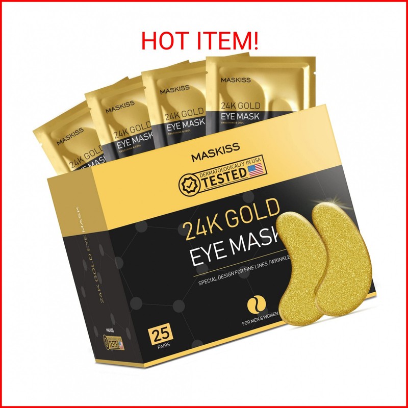 Maskiss 24k Gold Under Eye Patches (25 Pairs), eye mask, Collagen Skin Care Products, Eye Patches for Puffy Eyes, eye masks for dark circles and puffiness