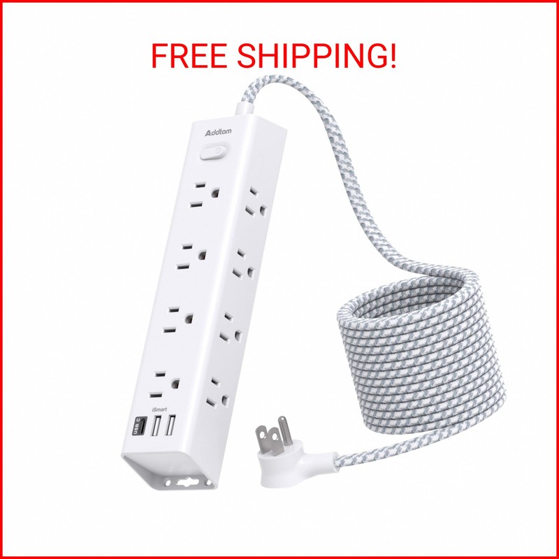 Surge Protector Power Strip - 10 FT Extension Cord, Power Strip with 12 Widely AC Outlet 3 USB, Flat Plug, Wall Mount Overload Protection, 1050J, Desk Charging Station for Home Office, ETL Listed
