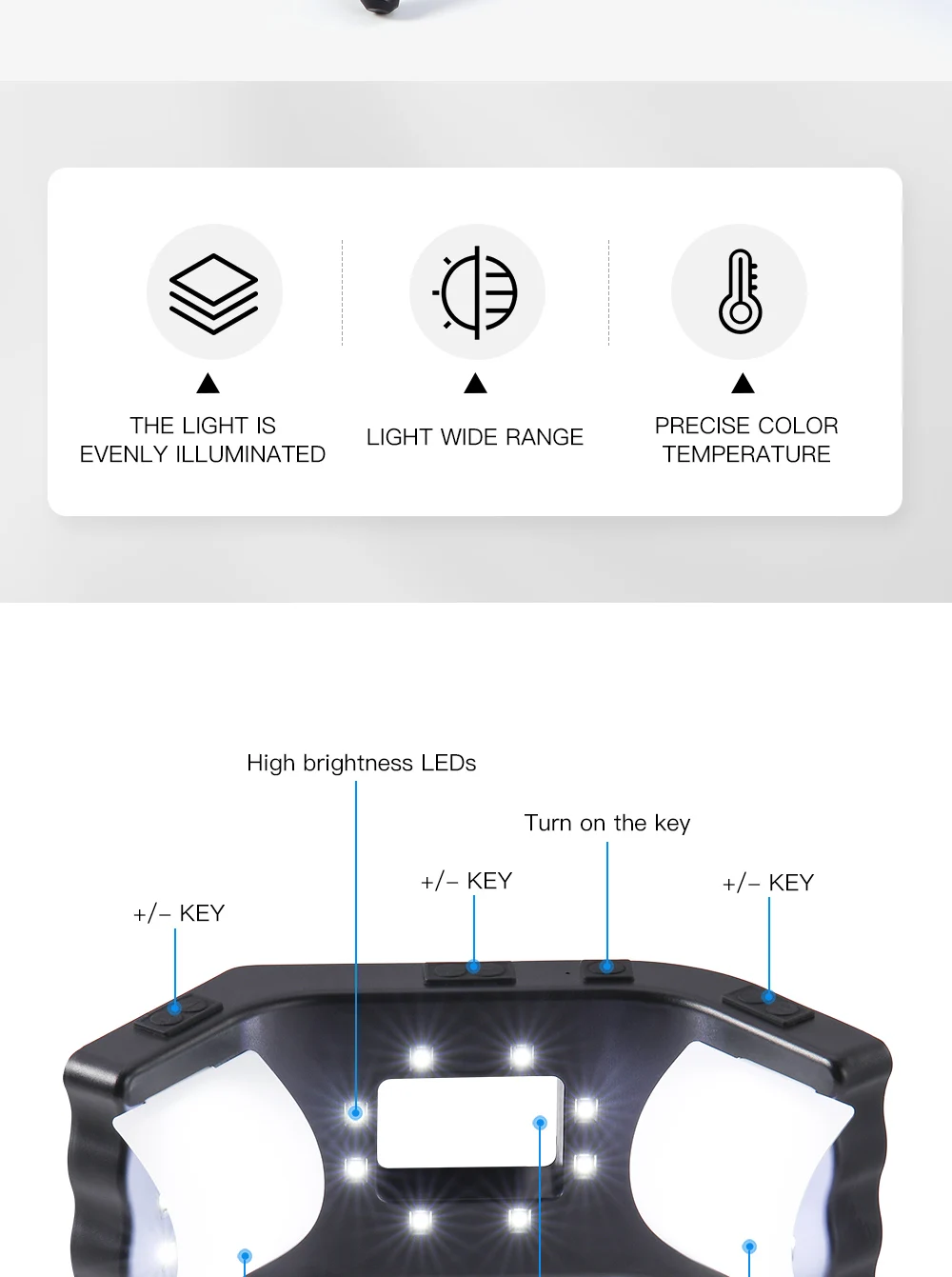1.The Light Is Evenly Illuminated/Light Wide Range/Precise Color Temperature.