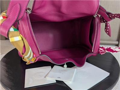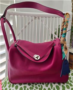 Some of the photographs show how I have always worn her, with handles wrapped in Twillies that can be swapped around to suit different occasions; dress up or down while providing good leather protection, and only ever soft charms so as not to cause damage. I think the Rose Pourpre is a gorgeous deep pop of colour for any season without being garish; its a colour that just makes you feel happy. As this has been one of my favourite bags, it is a very regretful sale.