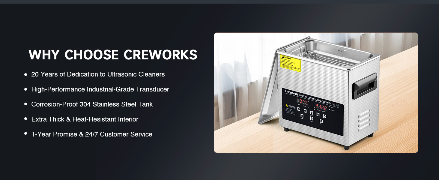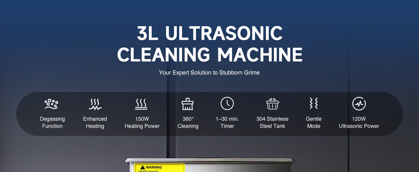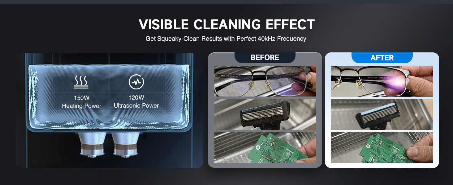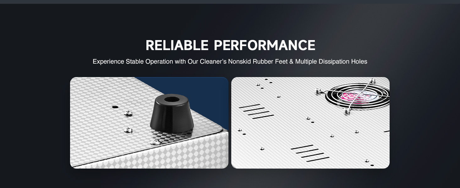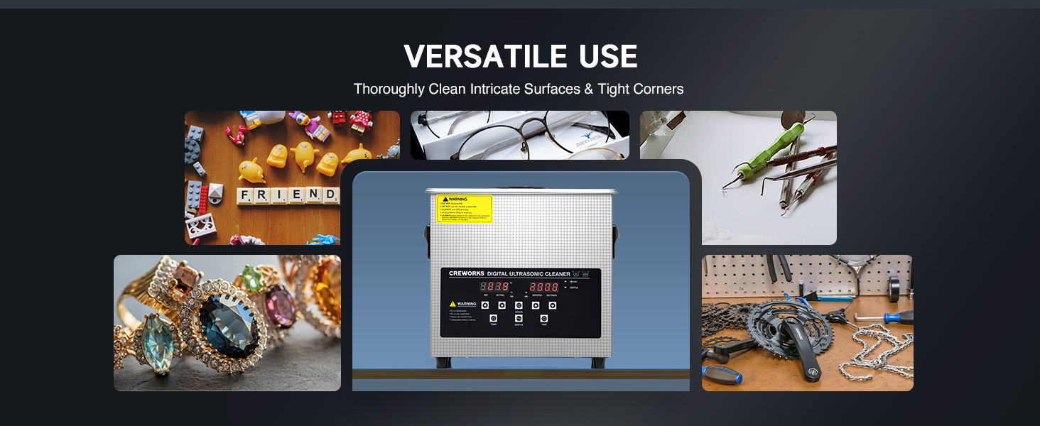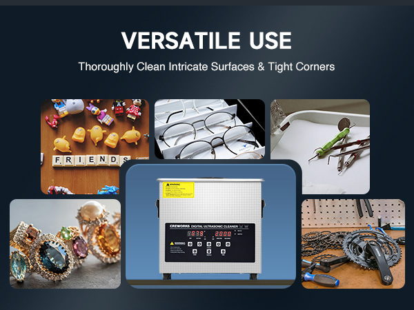 This industrial-strength ultrasonic cleaner is built to outperform and outlast the competition with its reinforced stainless steel tank walls, perfectly gentle yet thorough 40kHz sound wave cavitation, and intuitive control panel. The degas and gentle cleaning modes are specifically engineered to protect your delicate and valuable items.