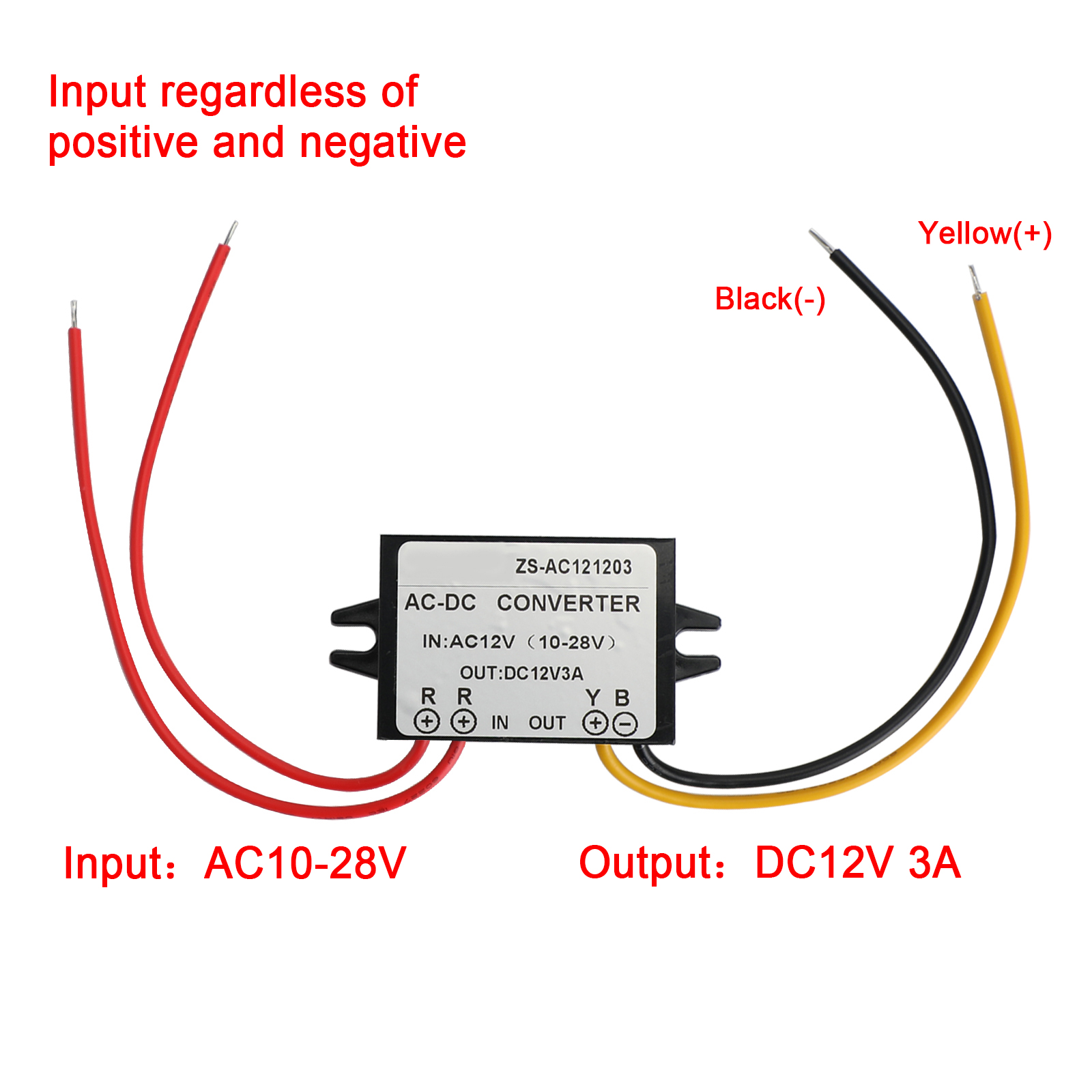 Output wire color : (+)Yellow, (-)Black.