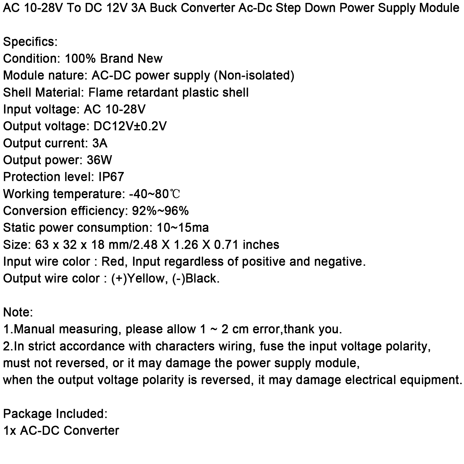 AC 10-28V To DC 12V 3A Buck Converter Ac-Dc Step Down Power Supply Module