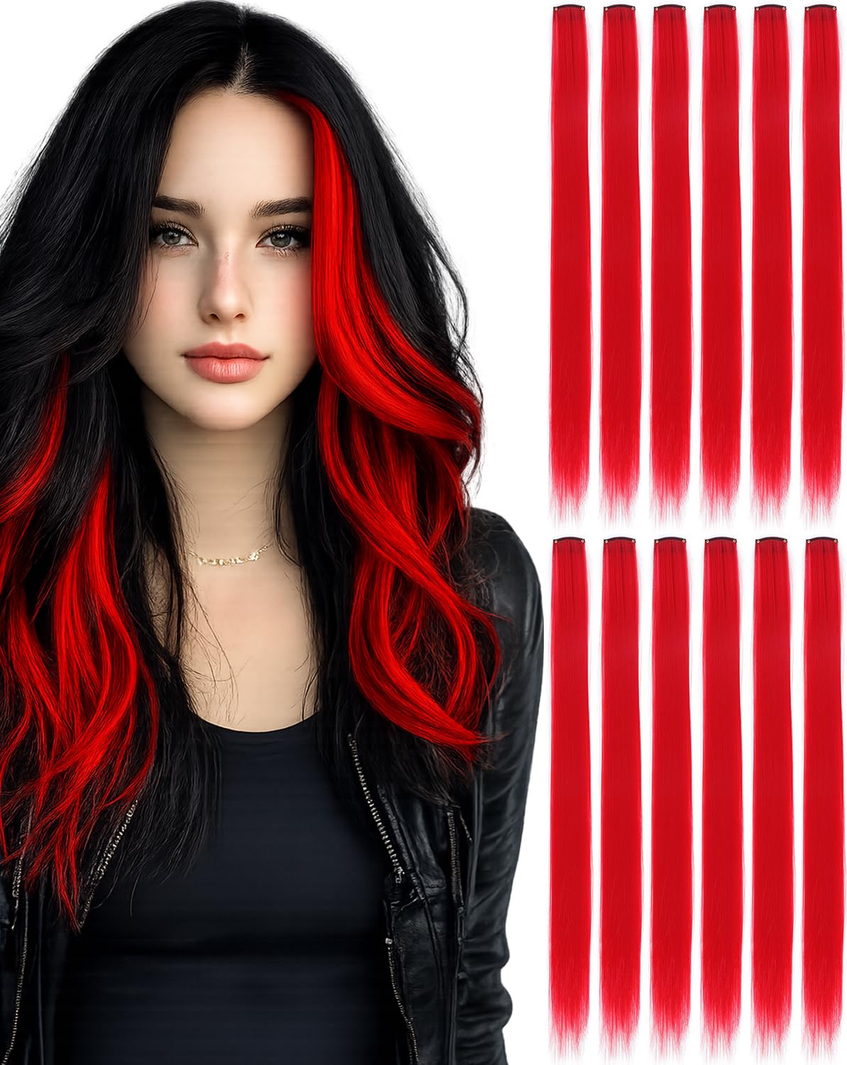- Red Clip In Hair Extensions:Instant red hair highlights without dye or chemicals. No damage, no commitment, easy clip-in hair color for women.