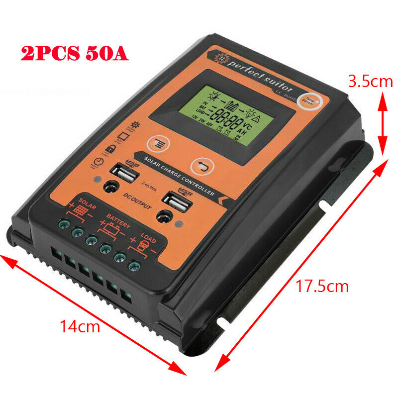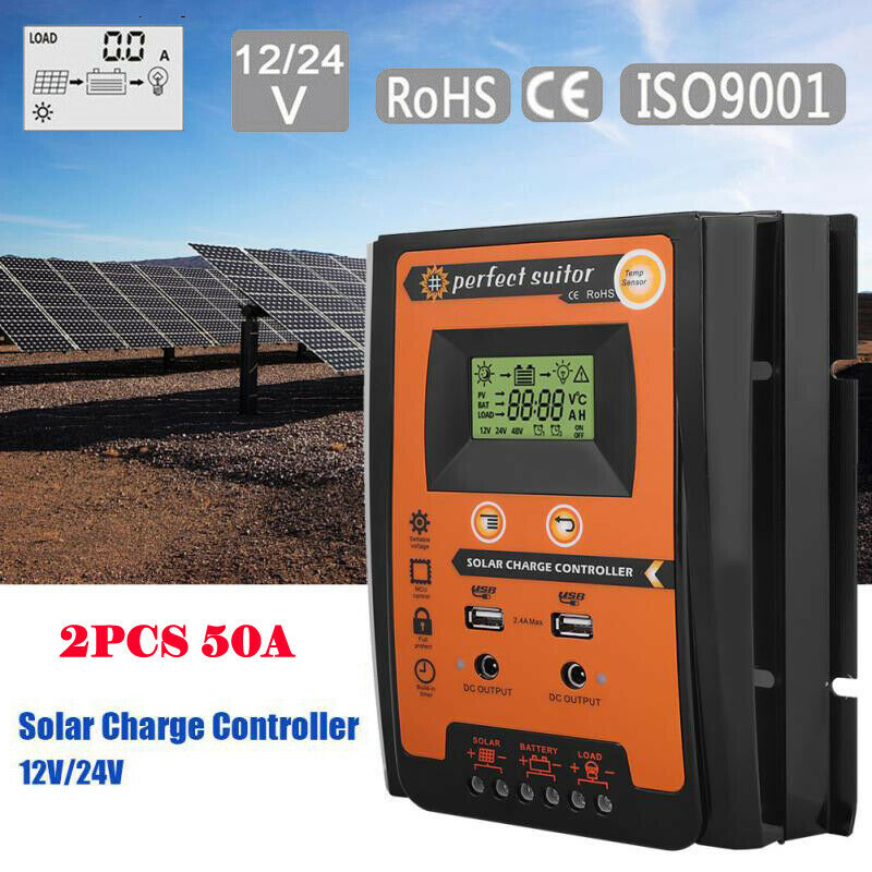2PCS 12/24 50A Solar Charge Controller Panel Battery Regulator Dual USB