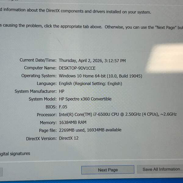 HP Spectre x360 15-AP012DX 2-in-1 touchscreen laptop in silver. This unit is being sold as broken and is offered exactly as described. Please review the provided details carefully before purchasing. The device includes the specifications listed above and is suitable for buyers looking for parts, repair, or recovery.