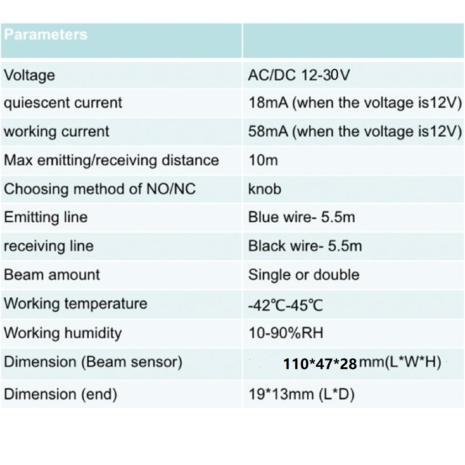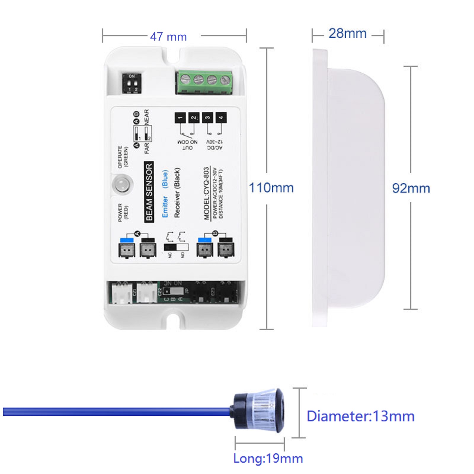 Dimension (Beam sensor): 110*47*28mm(L*W*H)