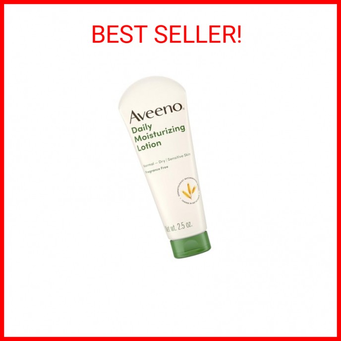 Aveeno Daily Moisturizing Body Lotion with Soothing Prebiotic Oat, Gentle Lotion Nourishes Dry Skin With Moisture, Paraben-, Dye- & Fragrance-Free, Non-Greasy & Non-Comedogenic, 2.5 fl. Oz