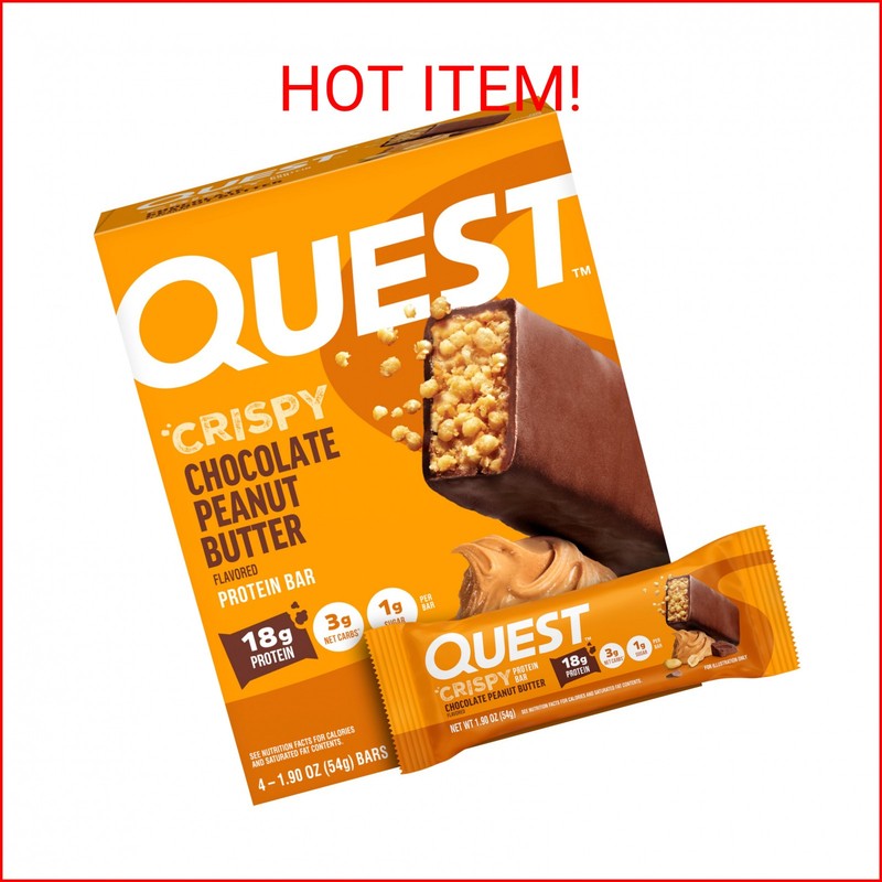 Quest Nutrition Crispy Chocolate Peanut Butter Hero Protein Bar, 18g Protein, 1g Sugar, 3g Net Carb, Gluten Free Protein Snack, Keto Friendly, 4 Count