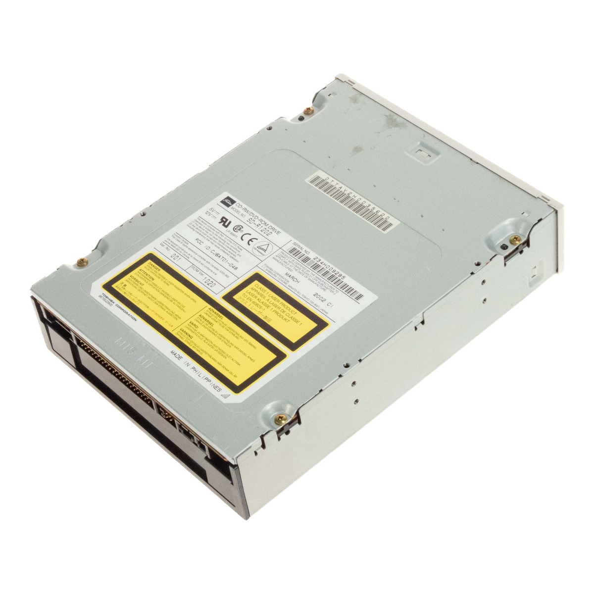 Manufacturer: Toshiba Model: SD-R1202 Type: Internal Drive type: CD-RW/DVD-ROM Writing speed: CDR 16x, CDRW 10x Reading speed: CD 40x, DVD 12x Color: White Format: 5.25" Interface: ATA Additional features: Jack plug, potentiometer