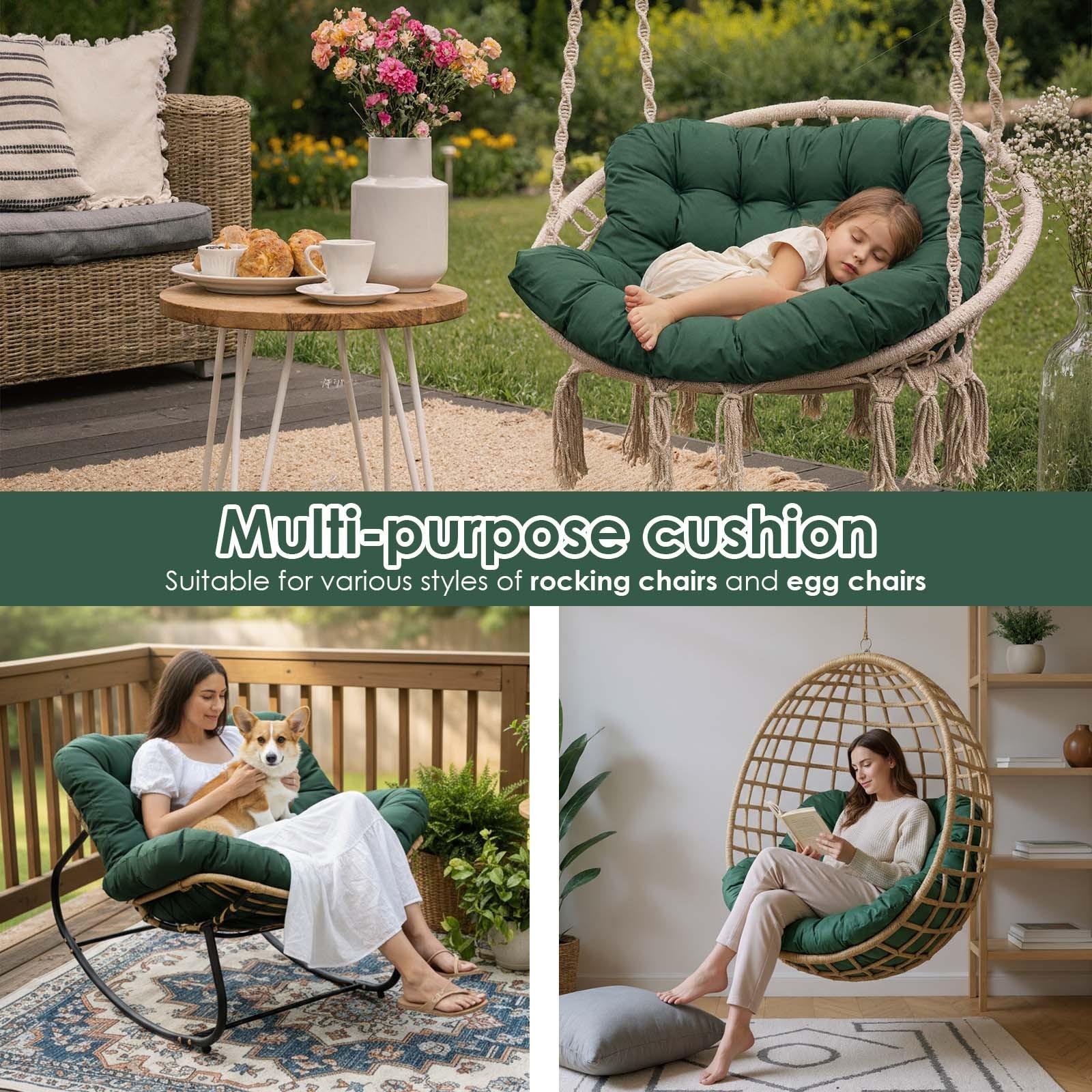 • Versatile: Great for a variety of settings including hammocks, swing chairs, papasan chairs, and more. Makes a thoughtful gift for Mother’s Day, Valentine’s Day, Thanksgiving, or Christmas.