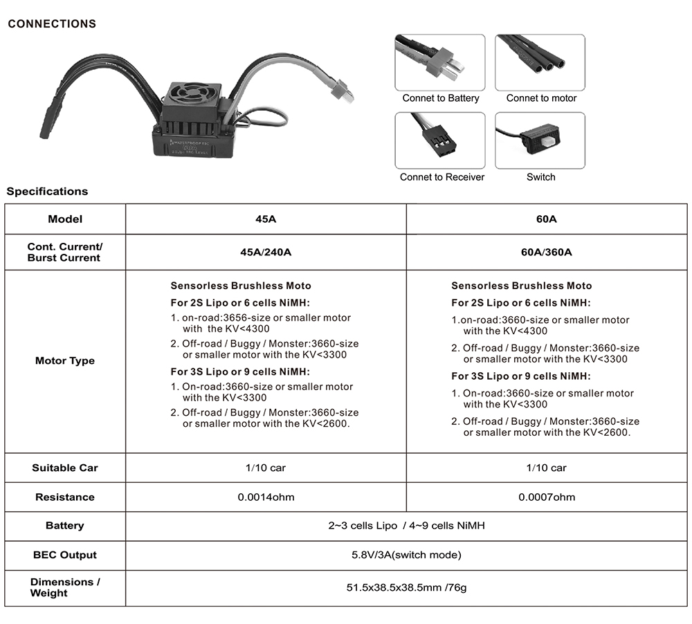 3.Universal fit its all 1/8 brushless cars-multi-mounting system for M3 screws.