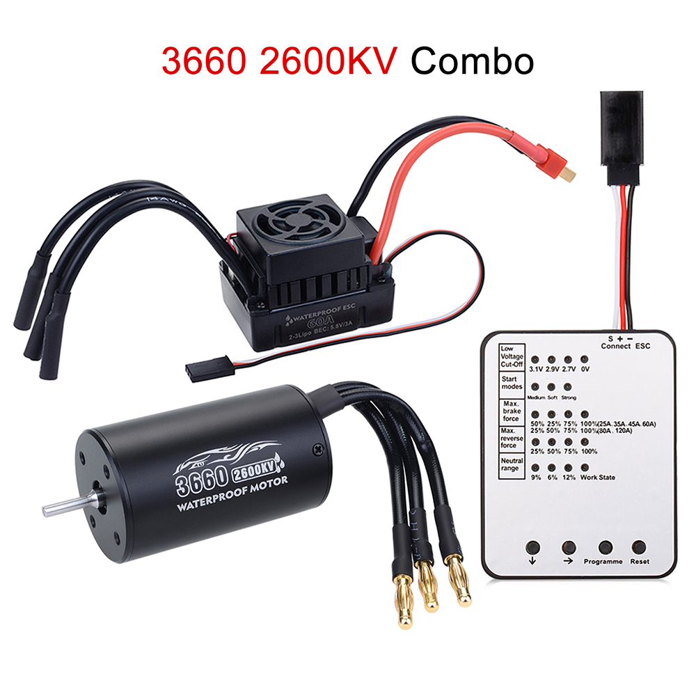 Waterproof 3660 2600KV 3300KV Brushless Motor 60A ESC for Tamiya Traxxas Slash Bandit Redcat 1/8 RC Car Truck Parts