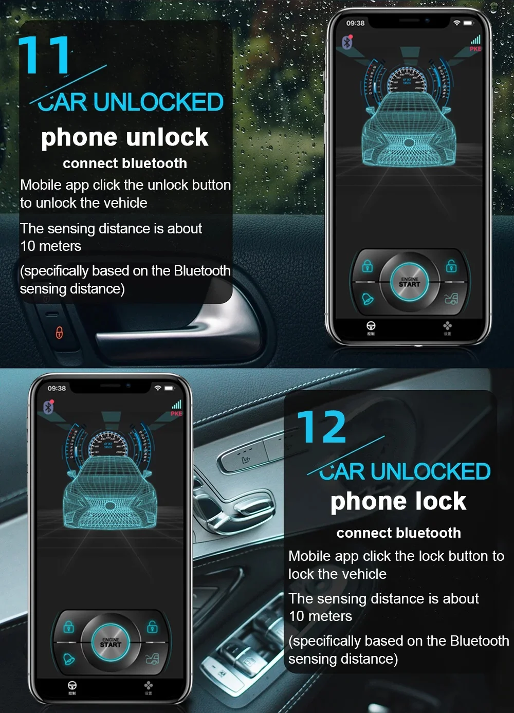8. Engine engine lock function (can not start the vehicle in the car after locking the door)
