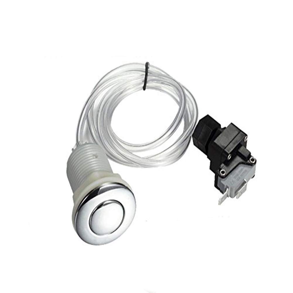 Garbage Waste Disposal Self-Lock Air Switch Push Button + Pneumatic Air Hose Kit Easy to install and cost-effective.Widely used in food waste processor This kit is replaced with your old Garbage Disposal with air switch. if your old one doesn't have the air switch (just have the power switch), this kit will not fit for it. It can also used in swimming pool, hot springs, hot tub, cleaning equipment, outdoor machines and medical equipment. Material: ABS, PVC, Stainless steel Rated current: 16A Rated voltage: 125-250V Thread Diameter:32mm/1.25" Air Hose Length:100CM/39.3" Button diameter:46mm/1.81" Air Hose Diameter:3mm/0.11" function:With self-lock, press the switch, it open, press the swith again, it lock. Air Switch Kit can be mounted easily to any Sink or Counter top installation. The built-in air switch ,easy to operate, press the click to finish your job. Package Included: 1X Garbage Disposal Air Switch Button replaceed kit set