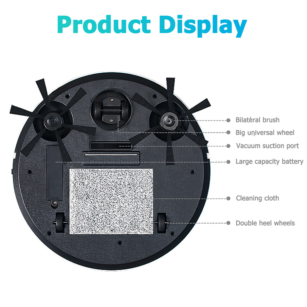 - Features: autonomous intelligent control, one-click start, sweeping, mopping, vacuuming, low noise, intimate, not disturbing, low repetition, high coverage, gyroscope, collision sensing detection obstacles, infrared sensing anti-fall, etc