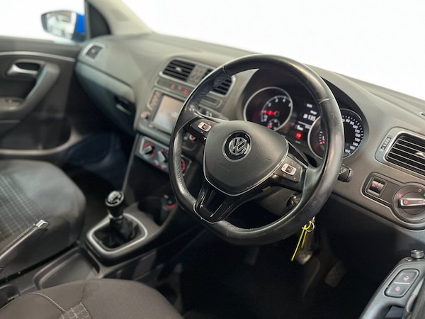 Volkswagen Polo 1.0 BlueMotion Tech SE Hatchback 5 door petrol manual Euro 6 with start/stop and 60 PS. This is a practical and economical hatchback, offering low running costs and a smooth, easy driving experience, making it ideal for both new drivers and everyday use. The vehicle is supplied with two keys and presents as a reliable and efficient option for those seeking a dependable small car. The specification includes alloy wheels and heated door mirrors for added convenience. Inside, the car benefits from air conditioning, DAB radio and Bluetooth connectivity, providing comfort and essential in-car entertainment. This Polo is a sensible and well-equipped choice, offering efficiency, practicality and reliability, ready for its next owner..alloy wheels , heated door mirrors , DAB radio + two keys , bluetooth , air conditioning , 12V Socket - Centre Console, 15in Alloy Wheels - Lyon, ABS - Anti-Lock Braking System, ASR - Anti Slip Regulation, Air Conditioning - Manual, Air Vent Surrounds - Matt Chrome, Airbags - Driver, Airbags - Front Passenger, Airbags - Front Side Head, Airbags - Front Thorax, Alarm with Interior Protection, Anti-Theft Wheel Bolts, Automatic Post-Collision Braking System, Aux-In Socket, Bluetooth Audio Connection, Bluetooth Phone Connectivity, Body Coloured Bumpers, Body Coloured Door Handles, Body Coloured Side Sills, Body-Coloured Door Mirrors with Integrated Indicators, Car Information Display, Carpet - Black, Central Locking - Remote with 2 Remote Keys, Chrome Trimmed Front Air Intake Grille Surround, Colour Touch Screen - 6.5in, Composition Media System, Cup Holders - Front x2, DAB+ - Digital Radio Reception, Dashboard - Titan Black, Daytime Running Lights, Differential Lock - Electronic, Door Mirrors - Electrically Adjustable and Heated, Driver Alert System, Dust and Pollen Filter, ESC - Electronic Stability Control, Electric Windows - Front and Rear, Electronic Engine Immobiliser, Front Seat Back Storage Pockets, Front Windscreen Washers and Wipers with 4 Speeds including Interval Delay, Galvanised Body, Gear Knob - Leather, Gear Lever Gaiter Surround - Matt Chrome, Glovebox, Grab Handles - Front x2 Rear x2 with Coat Hooks, HBA - Hydraulic Brake Assist, Handbrake Grip Button - Matt Chrome, Head Restraints - Front Whiplash Optimised, Headlights - Halogen Clear - Range Adjustable, Heated Rear Windscreen, Height and Reach Adjustable Steering Wheel, High Gloss Black Decorative Inserts, High Level 3rd Brake Light, Hill Hold Assist, ISOFIX Child Seat Preparation for 2 Rear Seats, Instrument Lighting - White Adjustable Panel Illumination, Interior Lighting Delay, Keys - Two Remote Control Folding Keys, Leather Trimmed Handbrake Grip, Lights on Warning Buzzer, Load Sill Protector, Luggage Compartment - Hooks x2, Luggage Compartment - Variable Load Floor, Luggage Compartment Cover - Removable, Luggage Compartment Light, MDI - Multi Device Interface, MP3 Compatible CD Player, Matt Chrome - Internal Door Handles, Multi-function Display, Multifunction Computer, Power Assisted Steering - Speed Sensitive, Radiator Grille - Black with Chrome Louvres, Reading Lights - Front x2, Reading Lights - Rear, SD Card Reader, SMS Functionality - Read - Compose and Send SMS Messages Using Tou