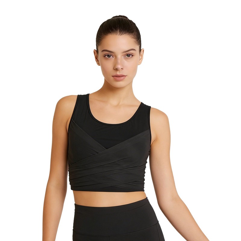 Women Tank Top Crop Bra Exercise Vest Front Cross Workout Mesh Cycling Ruched