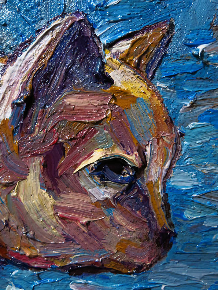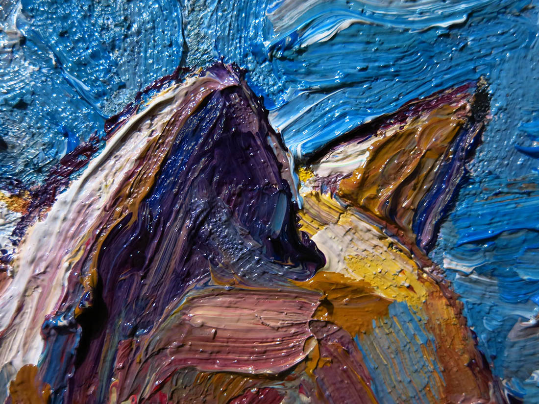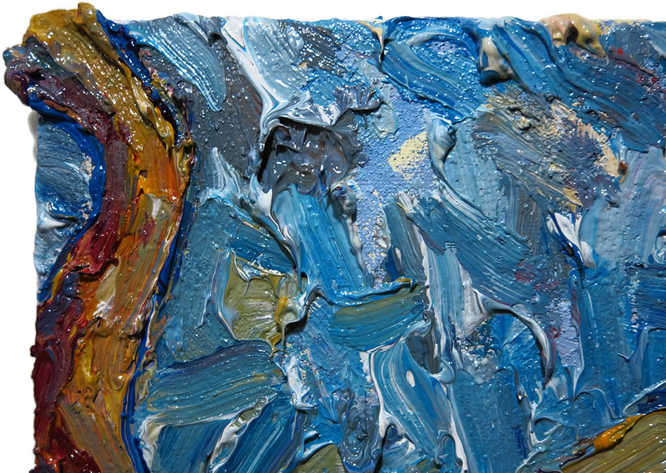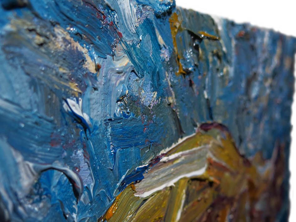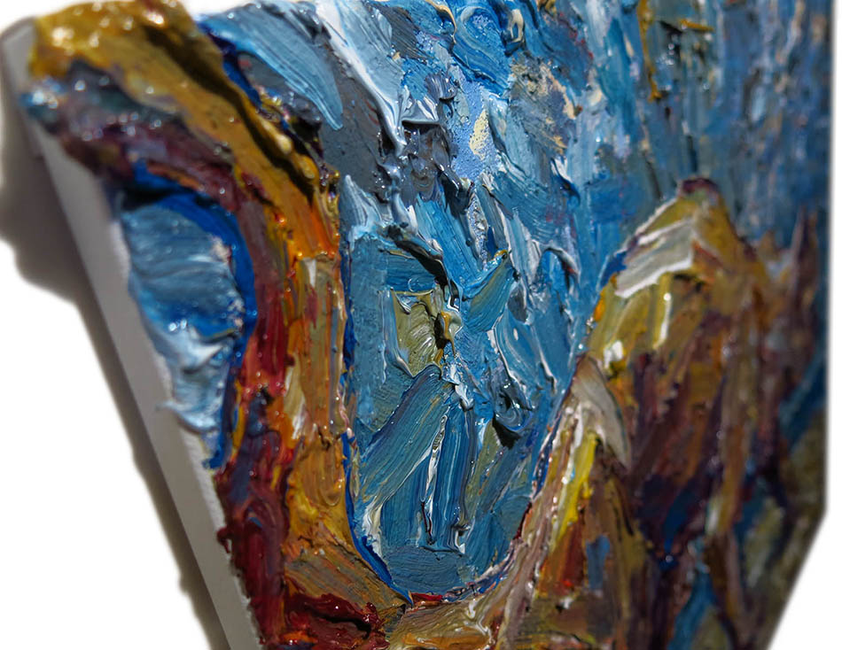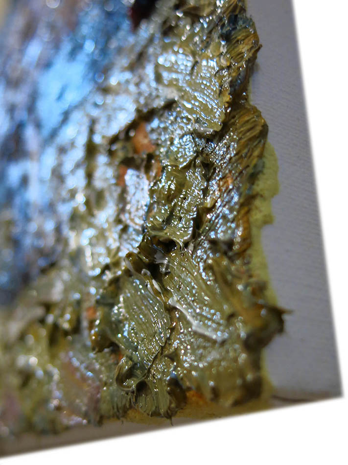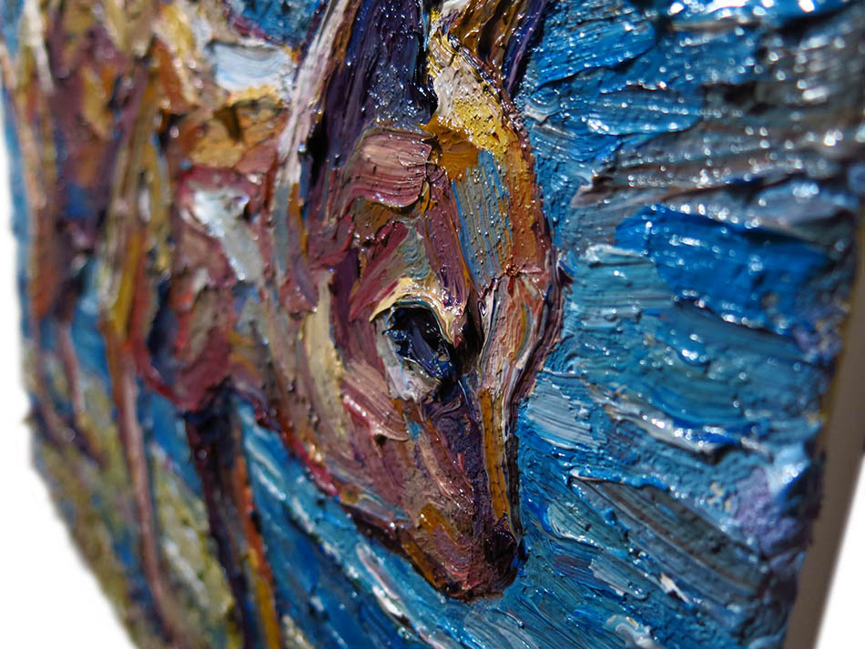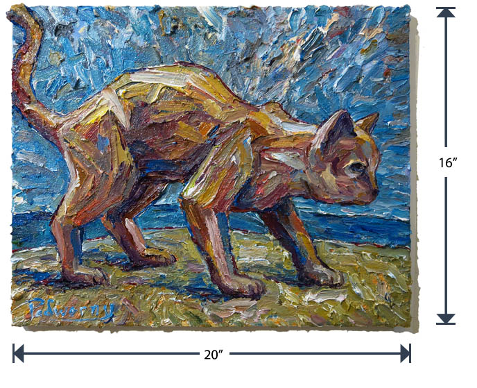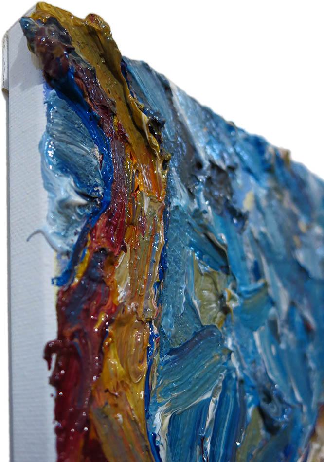 Oil Paint on canvas of 20 by 16 by 3/4 in., including hanging clip.